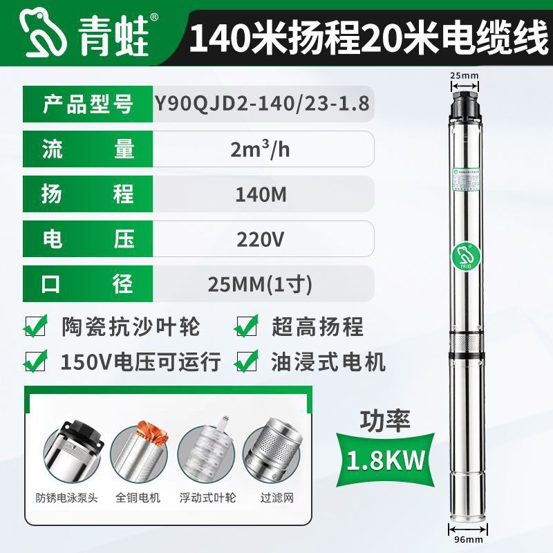 • 개구리 깊은 우물 펌프-220V-구리 헤드 Y75 유형 1500W 120m 슈퍼 파인