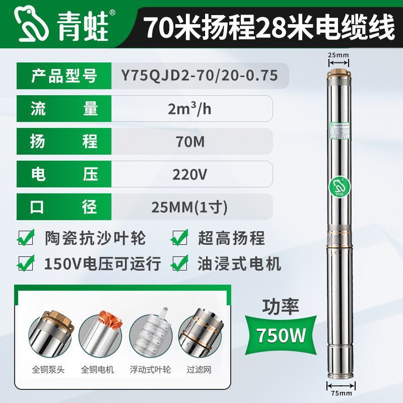 • 개구리 깊은 우물 펌프-220V-구리 헤드 Y75 유형 750W- 70m 초미세 펌프 본체