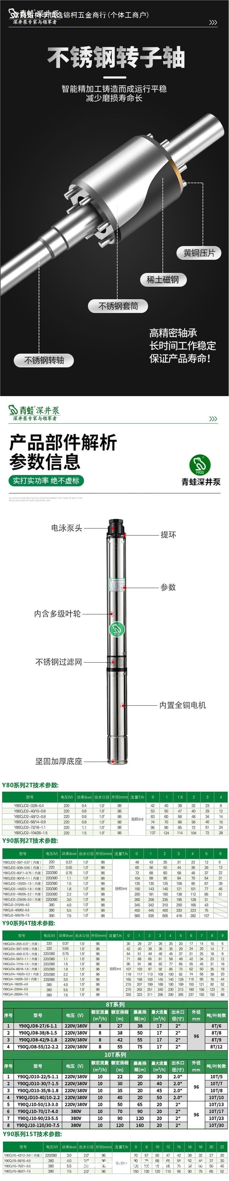 • 개구리 깊은 우물 펌프-380V-구리 헤드 Y75 유형 1500W 120m 슈퍼 파인