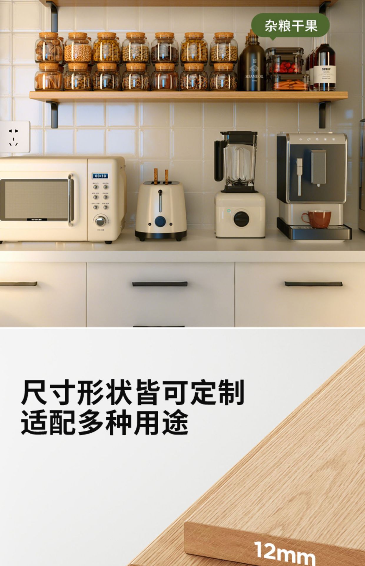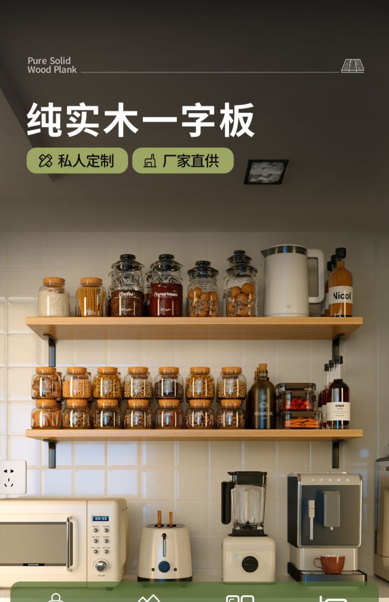 厨房墙上置物架实木壁挂式调料架多功能一字隔板油盐酱醋收纳架子