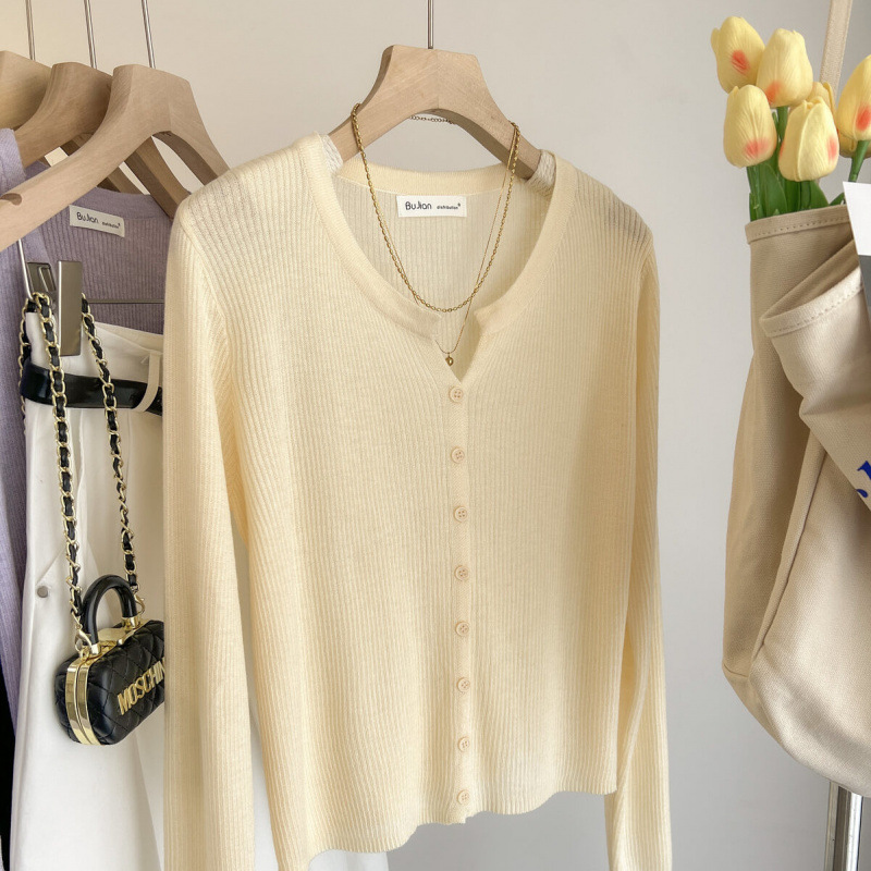 한국 브이넥 그레이 니트 카디건 여성용 게으른 아우터 얇은 아이스 실크 선 스크린 셔츠 목도리 봄과 여름 긴팔 자켓스토어 가기