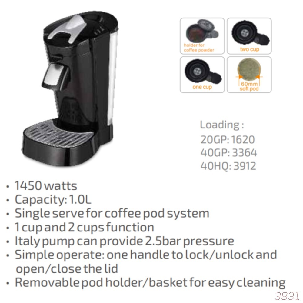 • Removable pod holder/basket foreasycleaning20GP: 1620 40GP: 3364