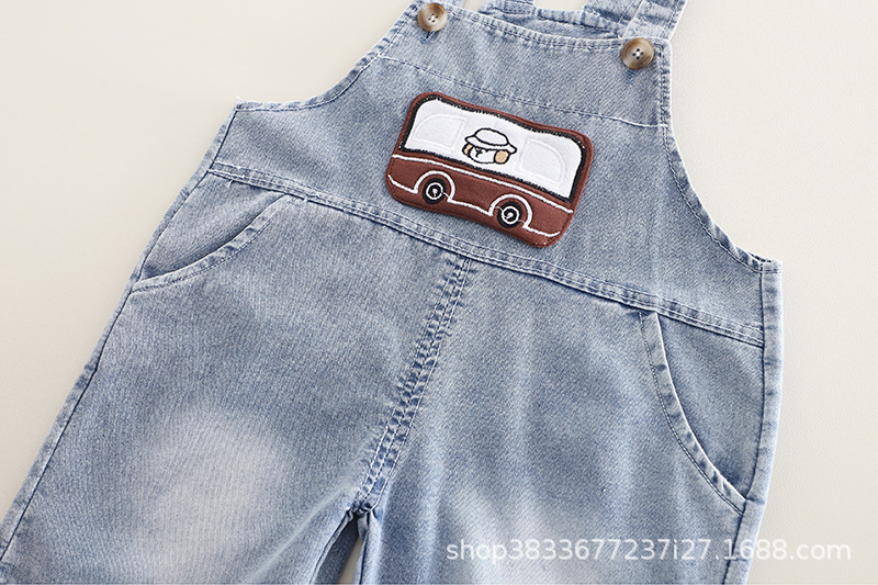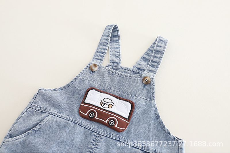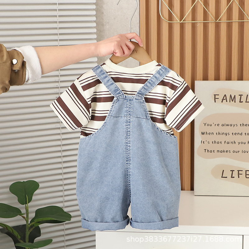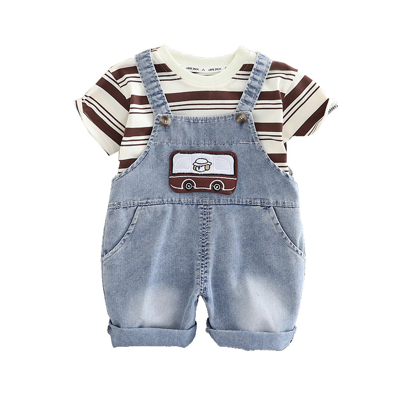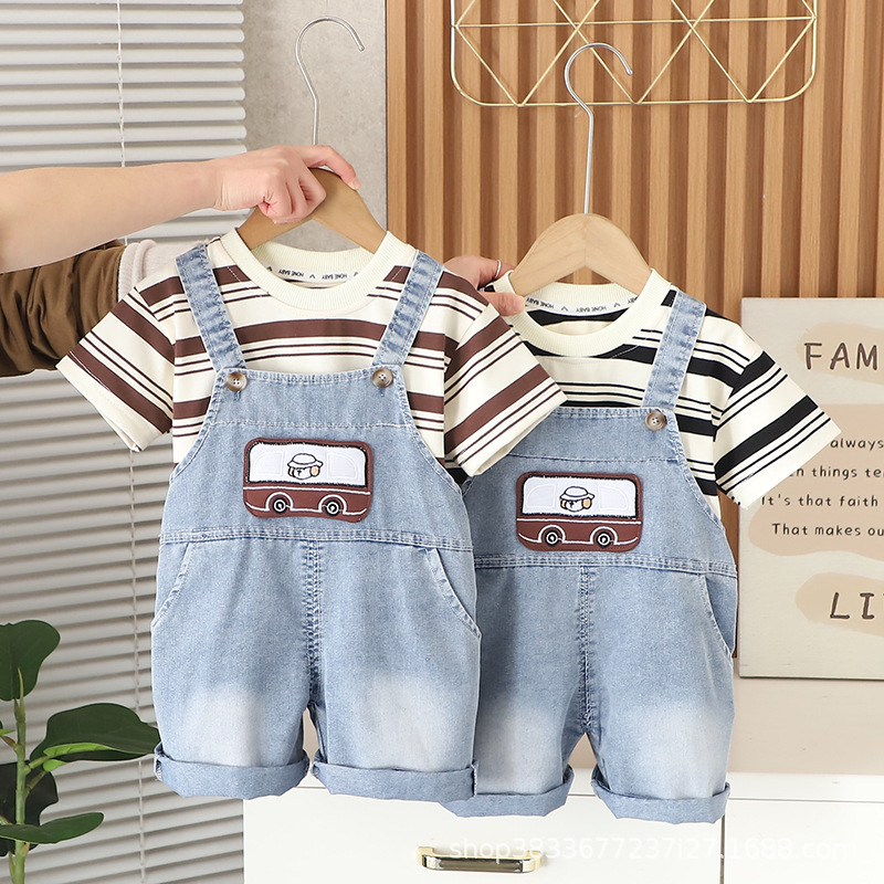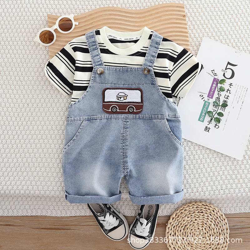남자들의 여름 스트랩 바지 세트 새로운 한국식 아기 아기 자동차 스트랩 반바지 머리를위한 투피스 세트