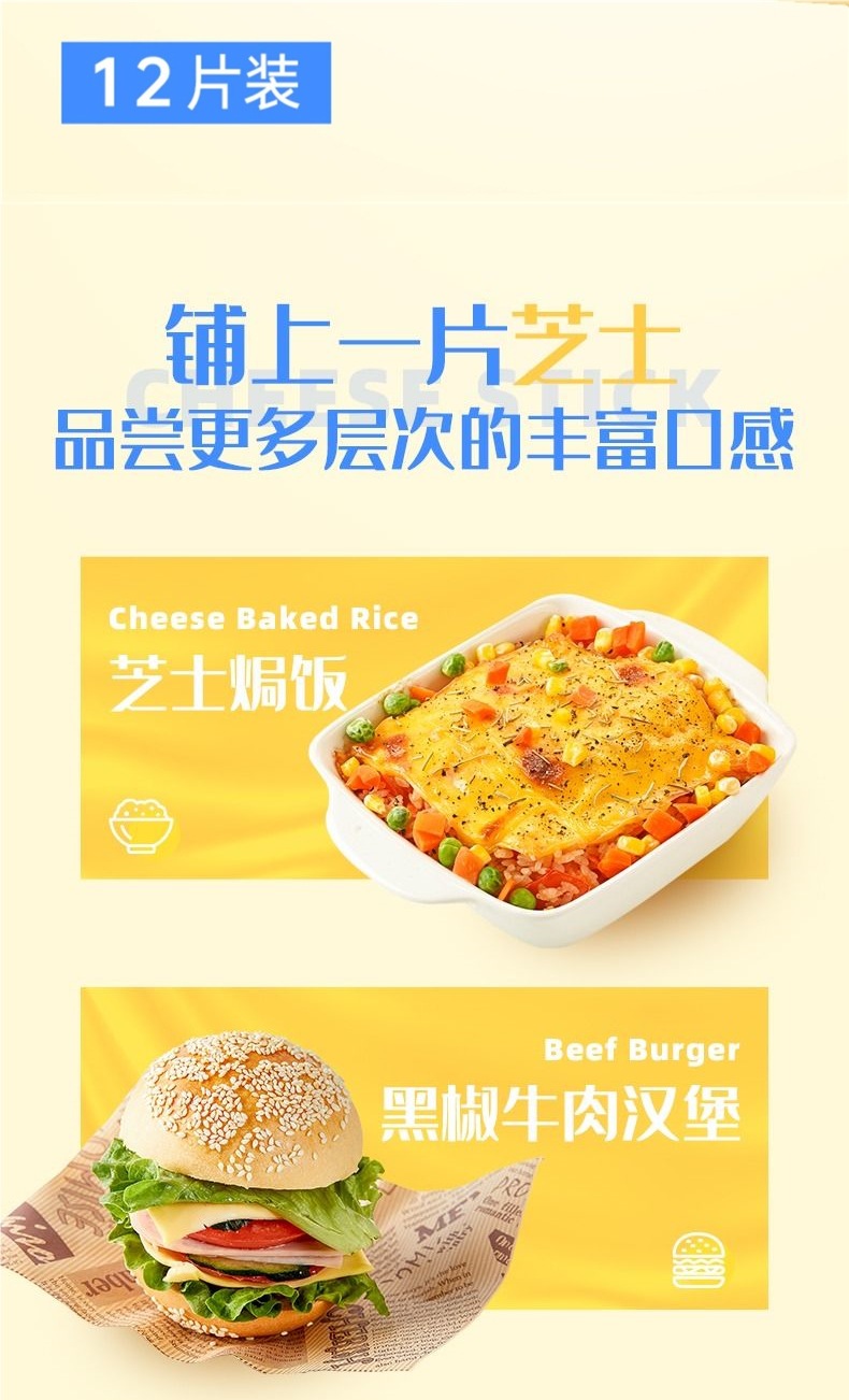 전시 치즈 조각 200g 구운 치즈 스틱 치즈 조각 홈 샌드위치 특별 식품 햄버거 12 조각스토어 가기
