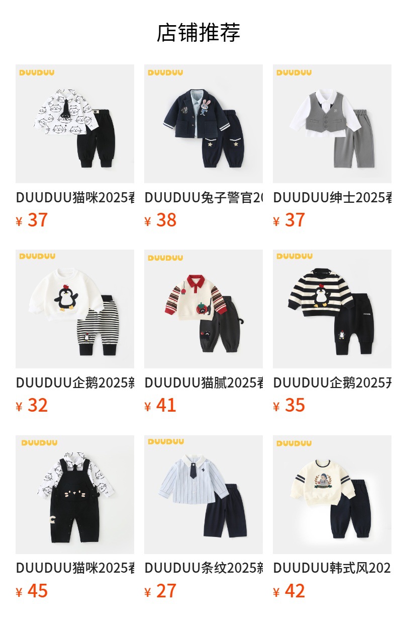 DUUDUU 툴링 2025 봄 아기 셔츠 어린이 바지 아기 어린이 옷 클래스 A 소년 세트스토어 가기