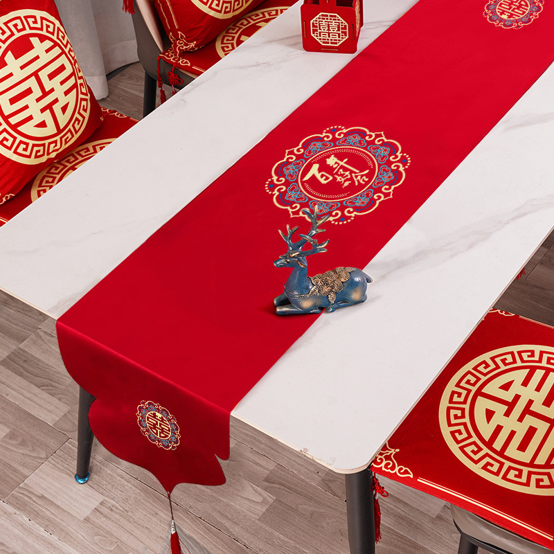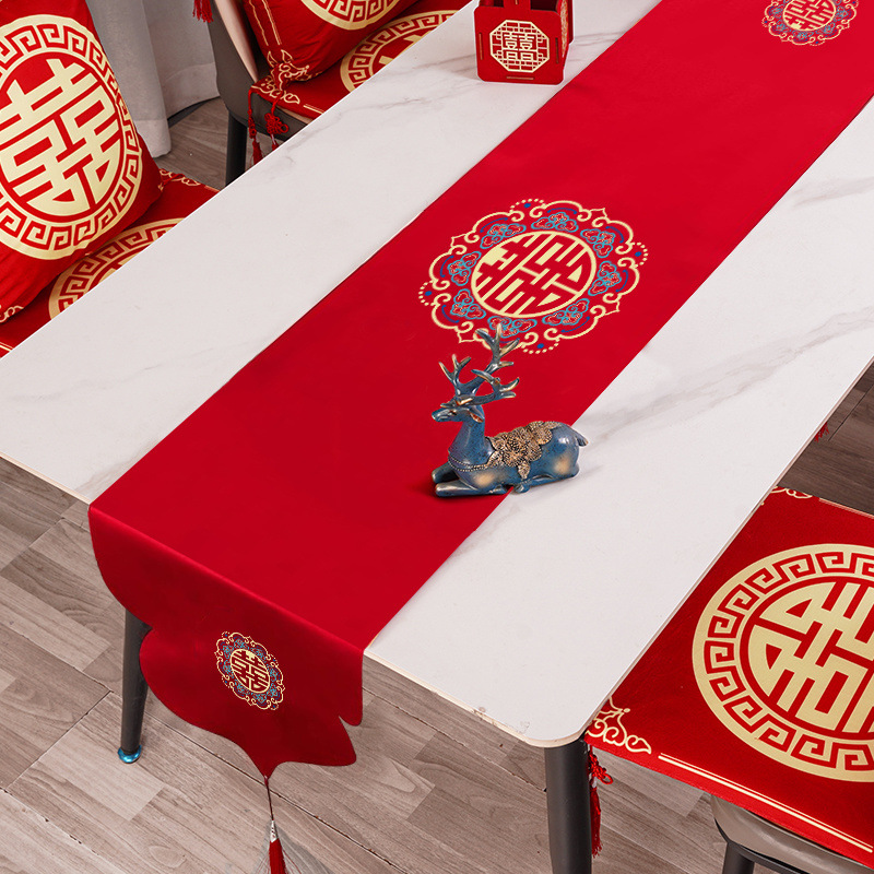 웨딩 타블렛 레드 해피 캐릭터 테이블 플래그 커피 테이블 커버 천 웨딩 룸 장식 웨딩 약혼 중국 새 집 레이아웃