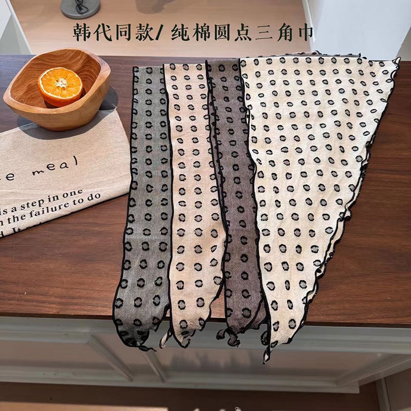 수출 일본과 한국 싱글 ~ 봄과 가을 새로운 빈티지 삼각형 타월면과 린넨 느낌 얇은 올 매치 웨이브 포인트 터번 작은 스카프스토어 가기