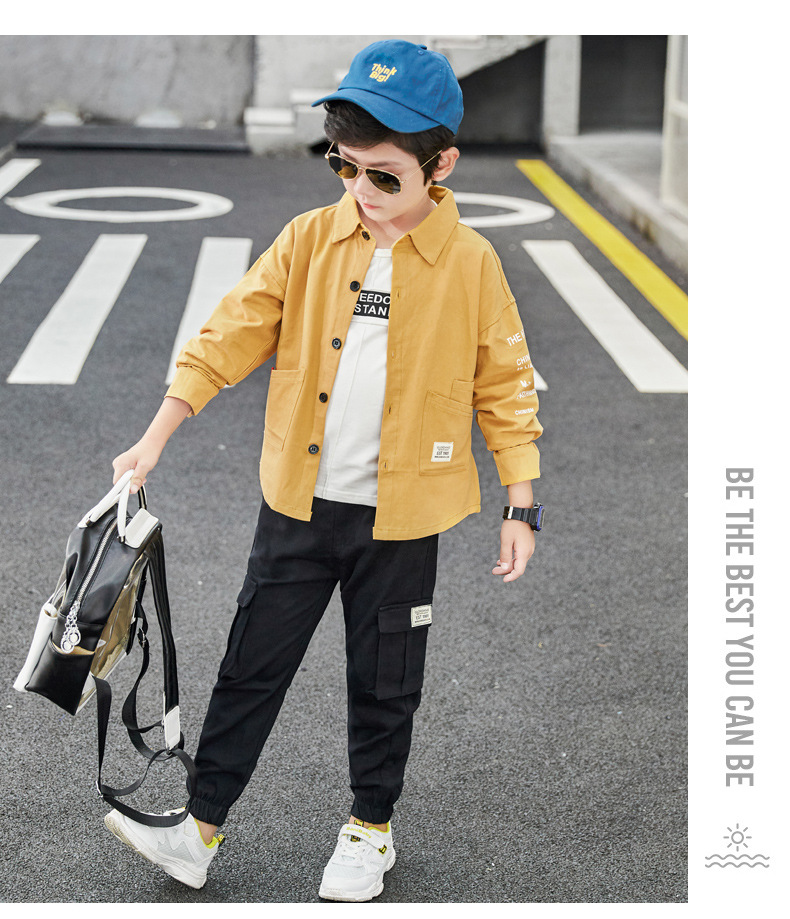소년의 긴 소매 셔츠 어린이 중 큰 어린이의 봄과 가을 유행 옷깃 셔츠 2025 봄 새로운 대외 무역 탑