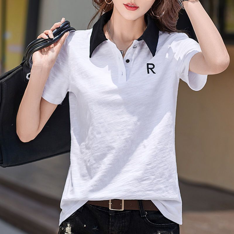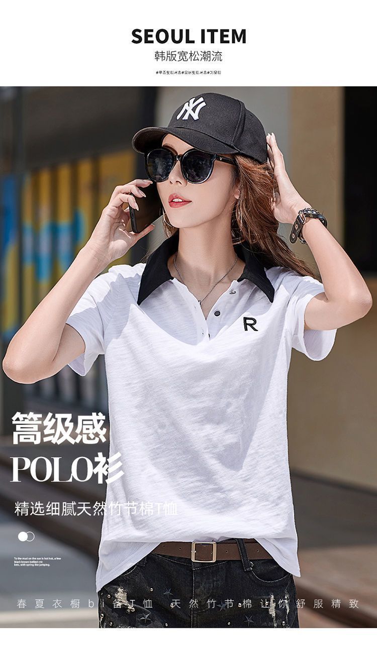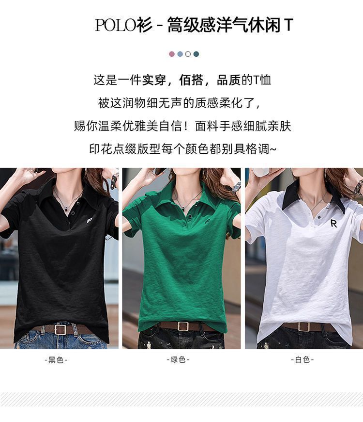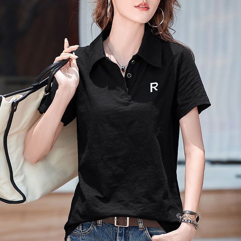통통녀 초대형 300kg 느슨한 슬림 폴로 칼라 짧은 소매 티셔츠 2025 여름 조커 새 자수 재킷스토어 가기