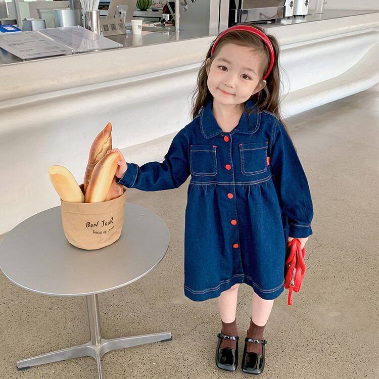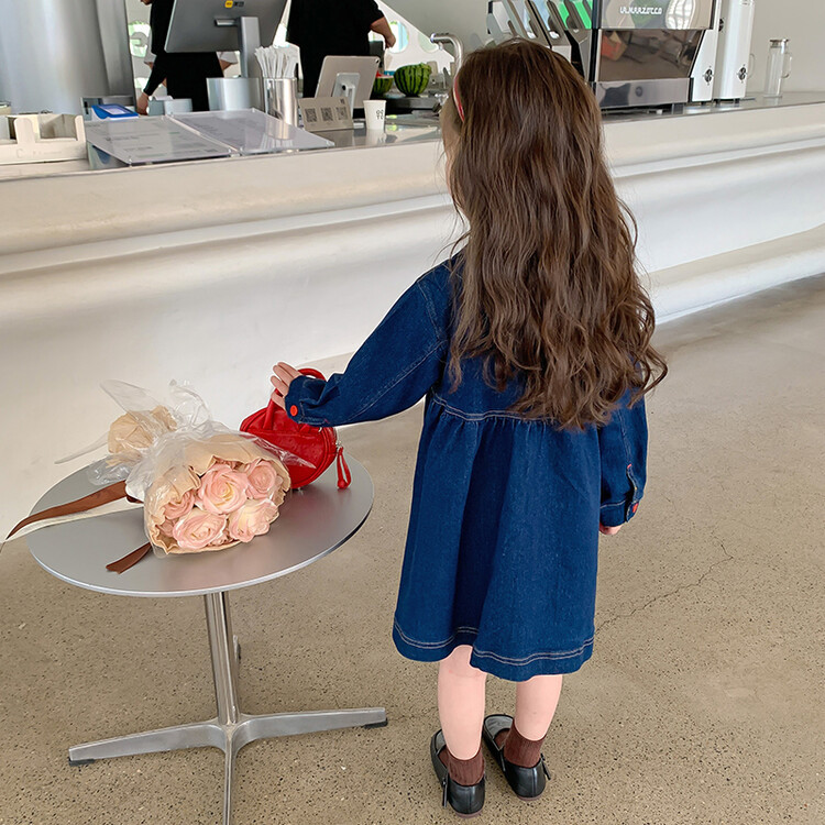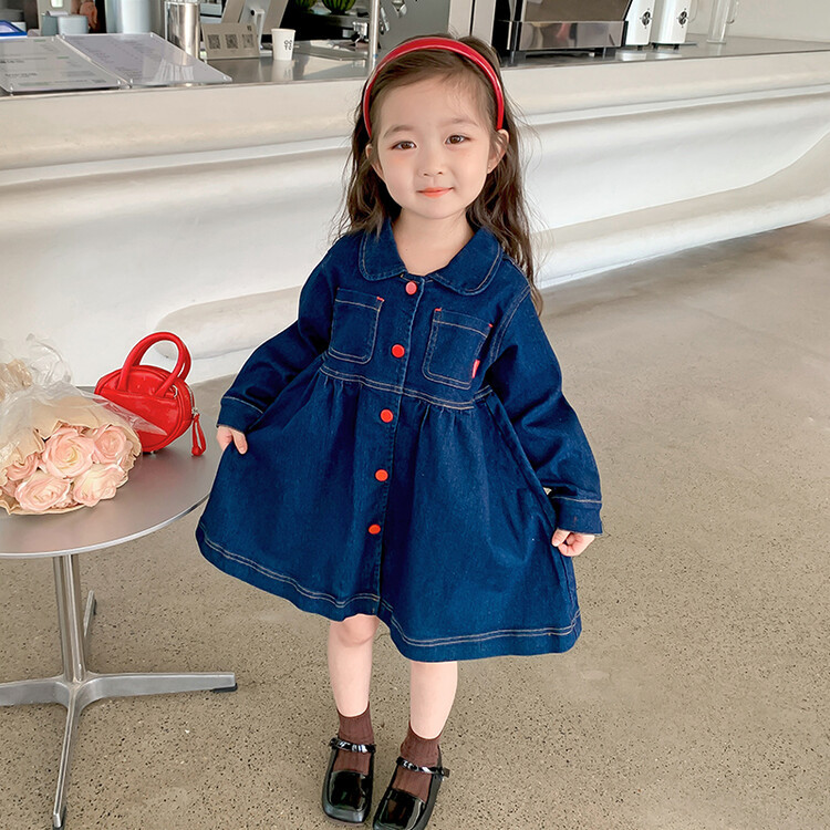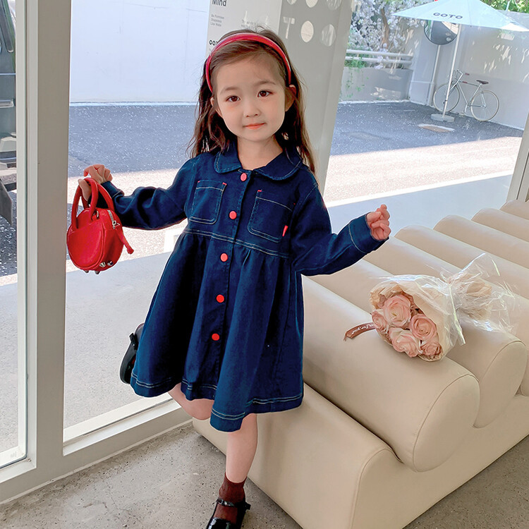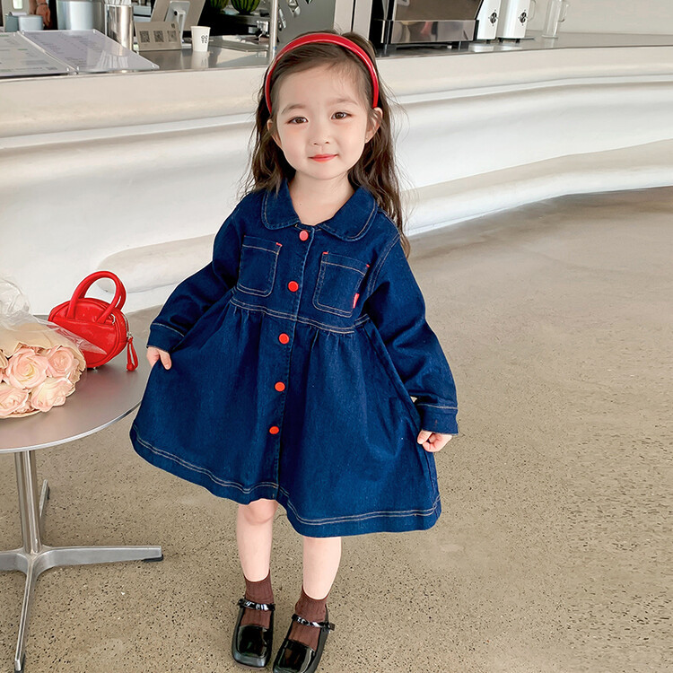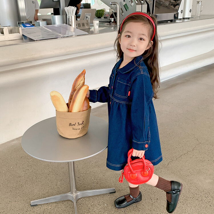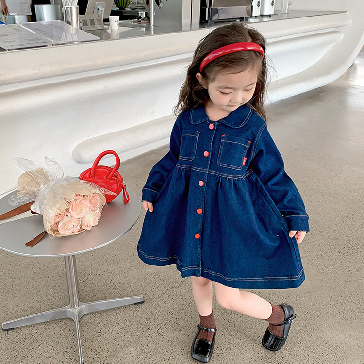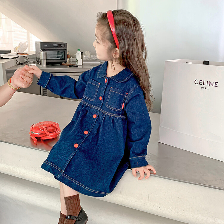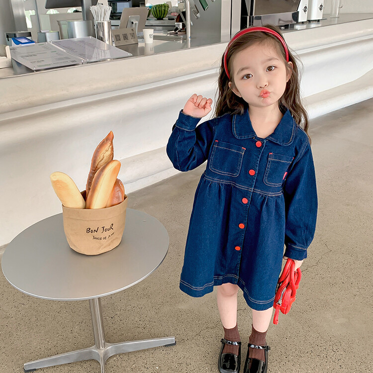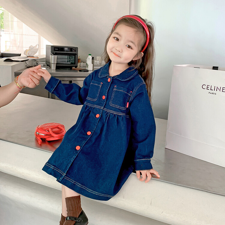 소녀 원피스 봄과 가을 새로운 아기 소녀 가을 서양식 데님 어린이 가을 긴 소매 공주 원피스스토어 가기
