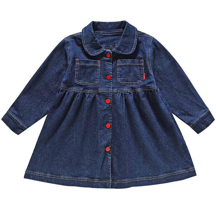 소녀 원피스 봄과 가을 새로운 아기 소녀 가을 서양식 데님 어린이 가을 긴 소매 공주 원피스