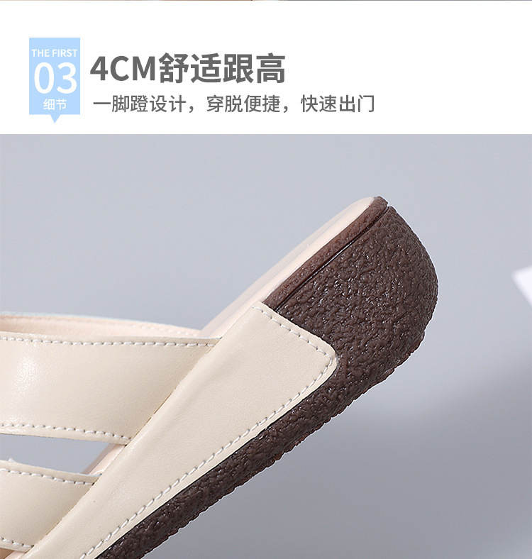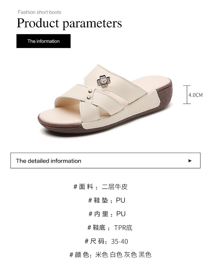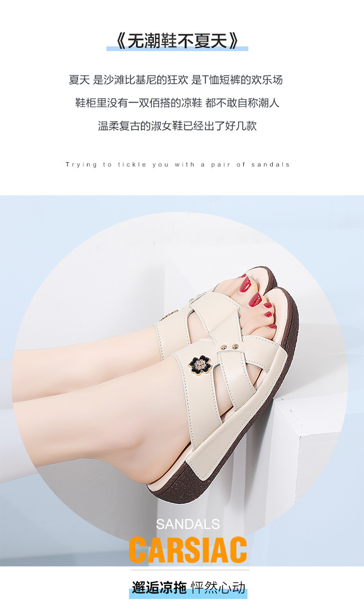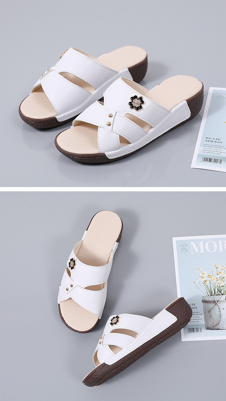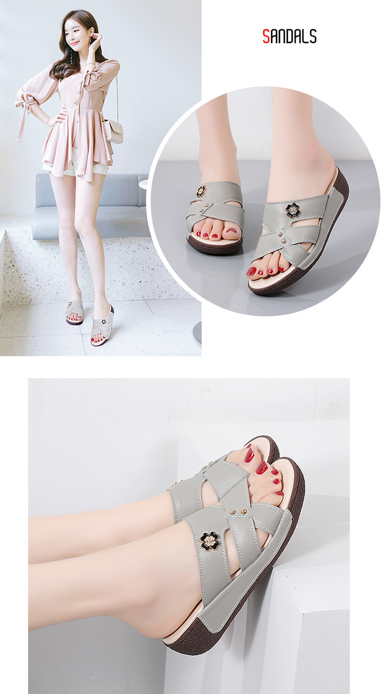 여름 새로운 정품 가죽 어머니 슬리퍼 여성 아웃웨어 중년 및 노인 여성 신발 쐐기 중년 여성 슬리퍼