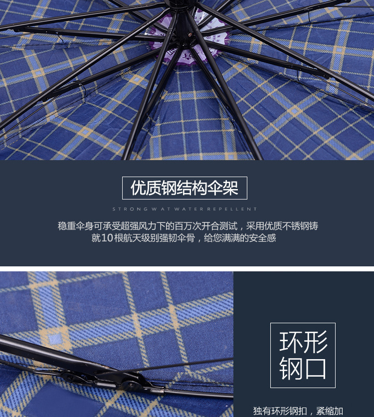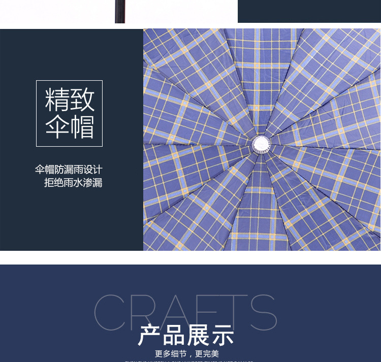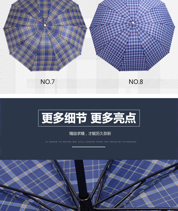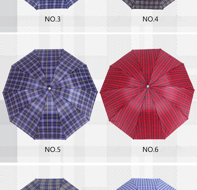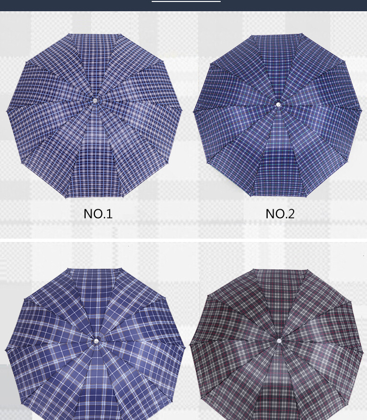 뜨거운 판매 10 뼈 대형 격자 무늬 우산 폴리 에스터 버그 우산 암호화 된 굵은 골격 남성 우산 실용적인 대형 우산 도매스토어 가기