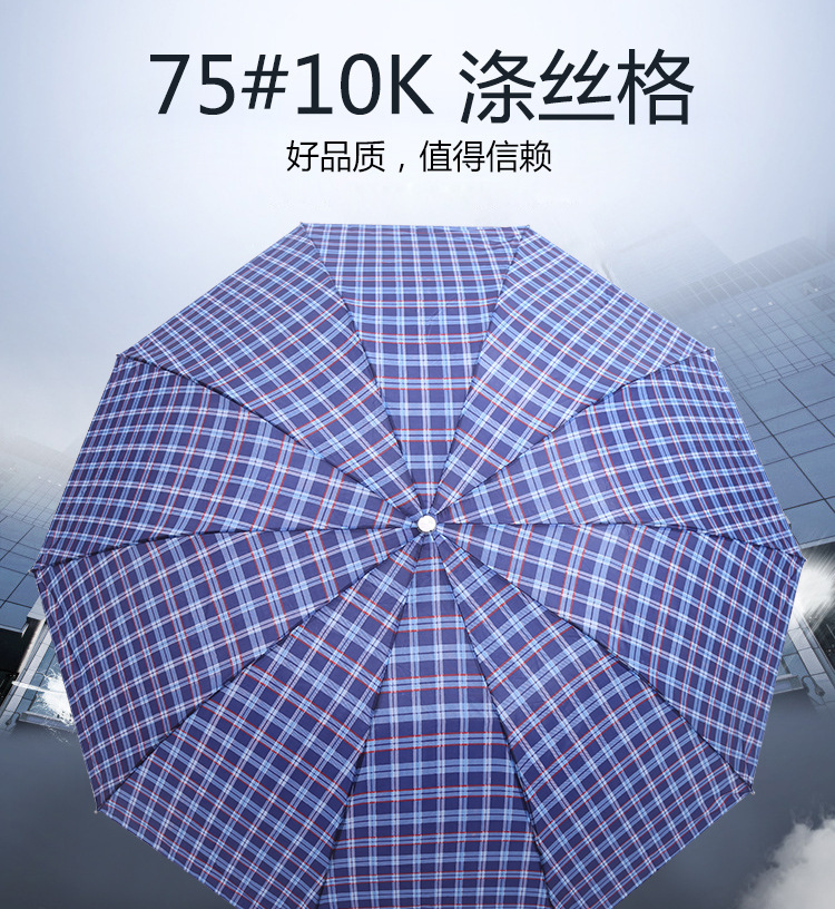 뜨거운 판매 10 뼈 대형 격자 무늬 우산 폴리 에스터 버그 우산 암호화 된 굵은 골격 남성 우산 실용적인 대형 우산 도매