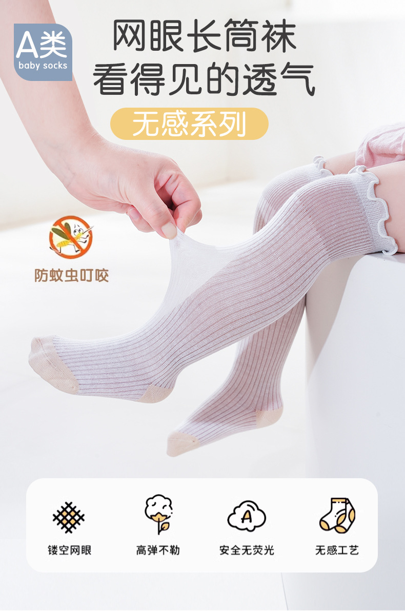 Sunseeker Yujia 봄과 여름 새로운 아기 양말 모기 방지 클래스 면화 나무 귀 다리 무릎 보호 스타킹 색상 일치 어린이 양말스토어 가기