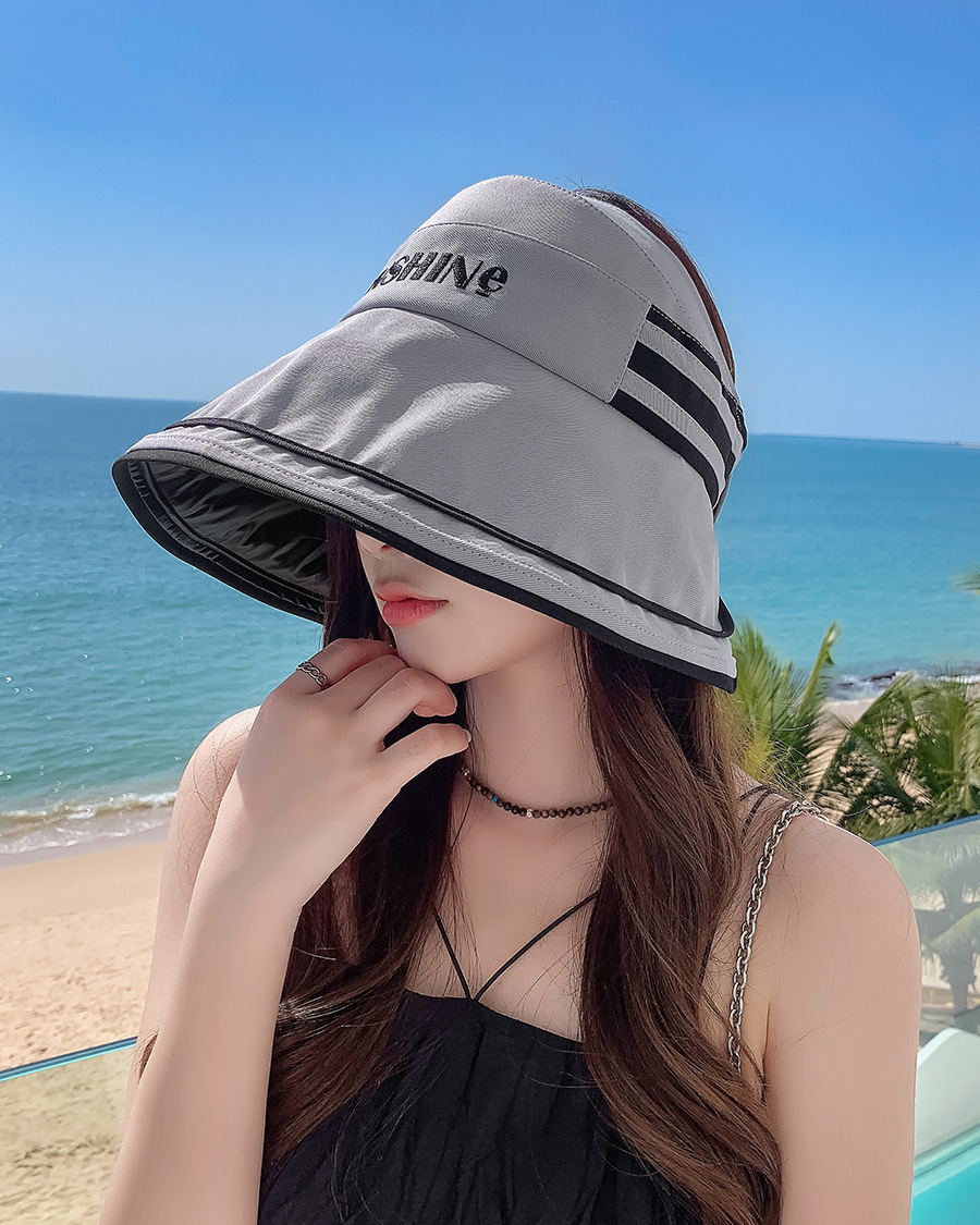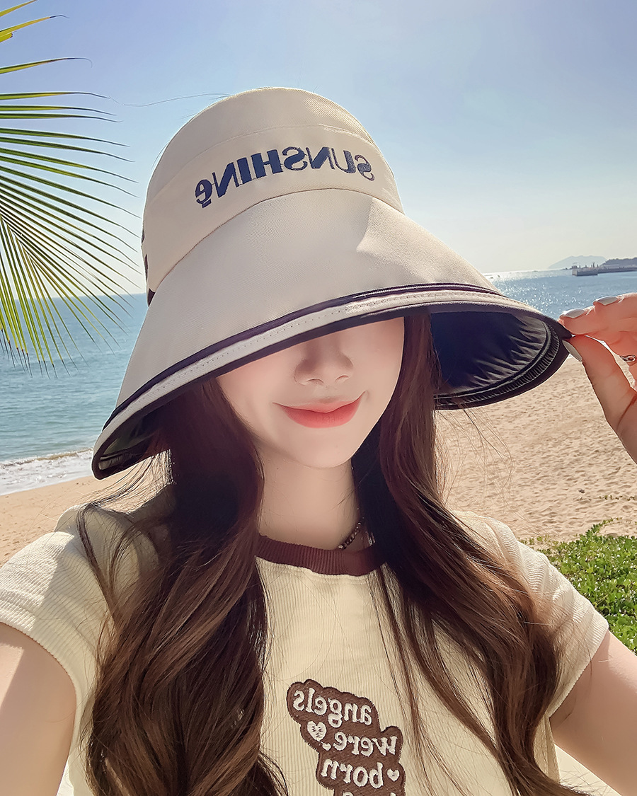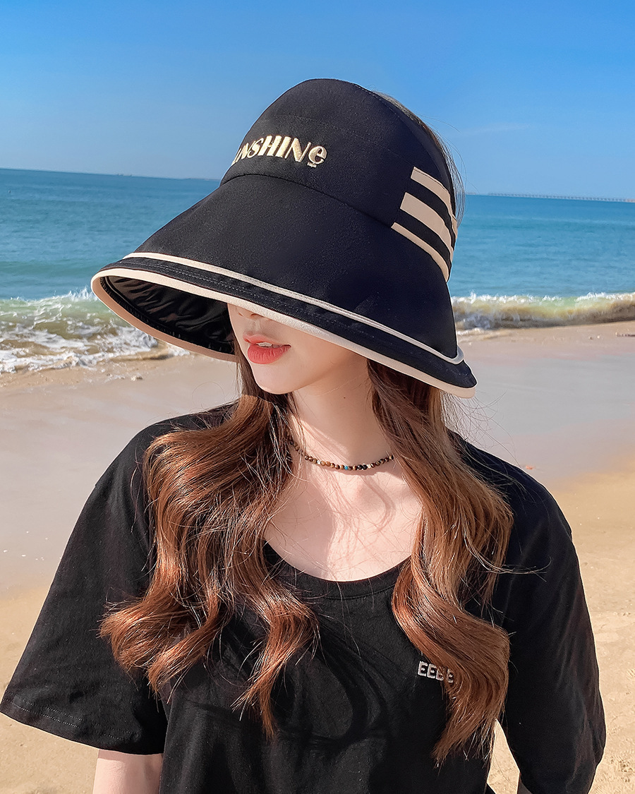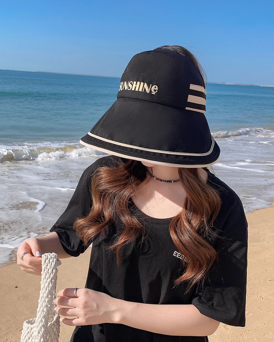 새로운 한국어 버전 여름 검은 고무 안티-UV 빈 정상 그늘 모자 어린이 큰모자 여행 해변 선 스크린 어부 모자스토어 가기