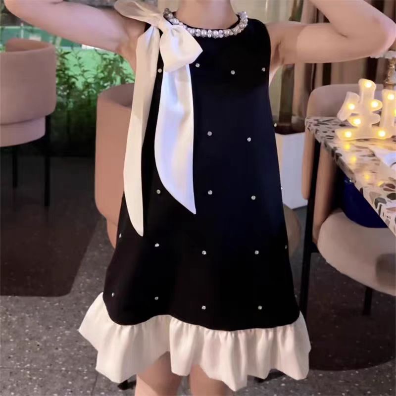 2025 새로운 작은 향기로운 스타일 홀터넥 스커트 아기 소녀 여름 드레스 구슬 드레스 공주 드레스 소녀 어린이 드레스 여름스토어 가기