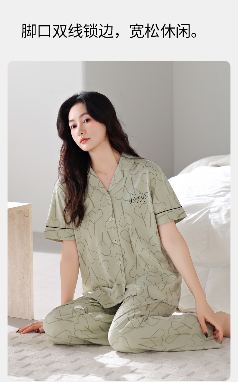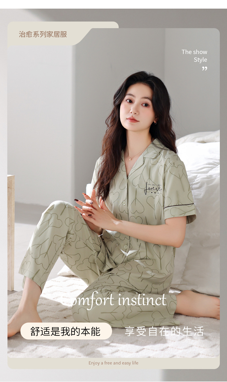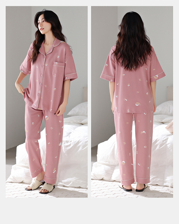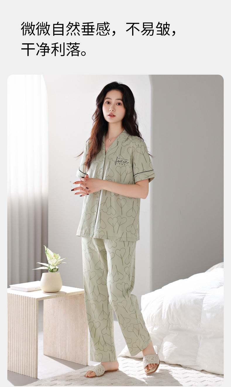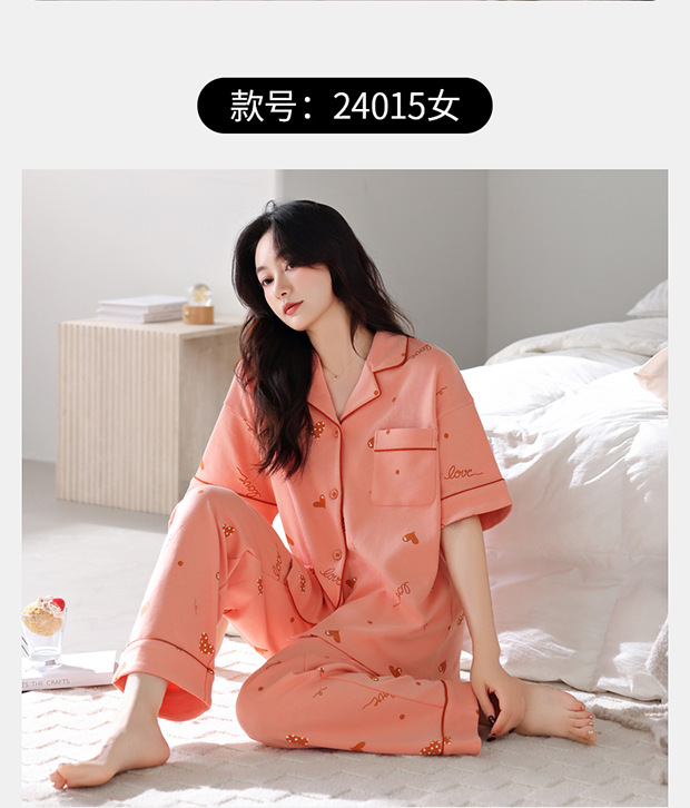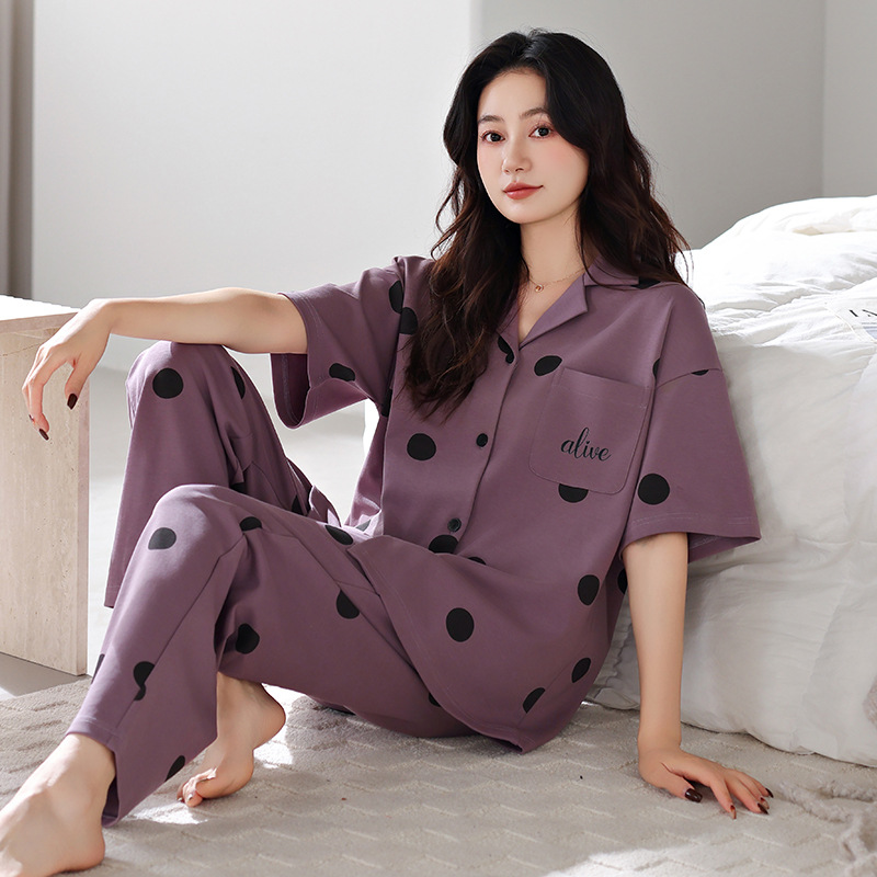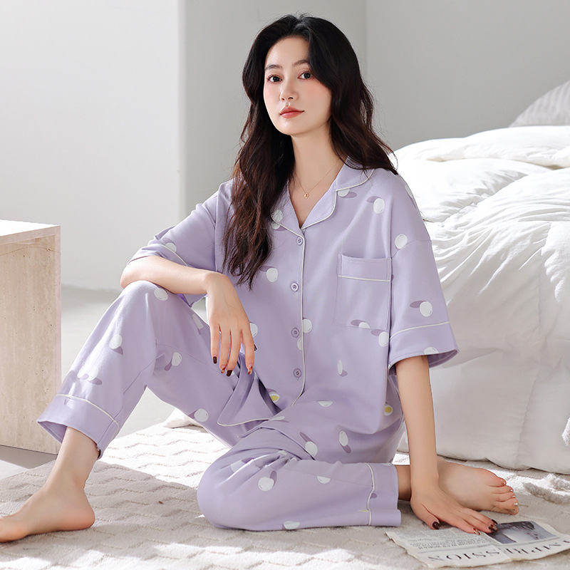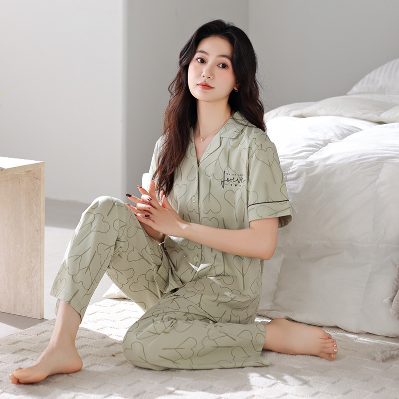 여름 잠옷 여성면 반팔 바지 홈 옷 얇은 여름 면 카디건 겉옷 플러스 사이즈 홈 옷스토어 가기