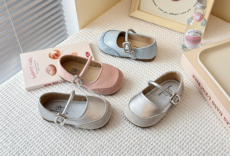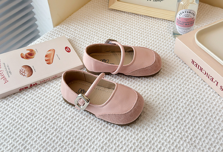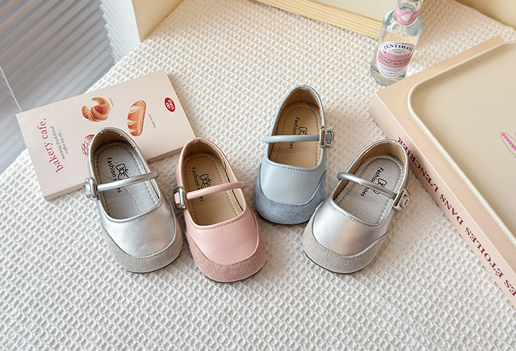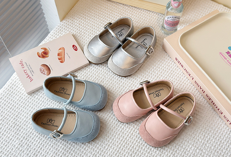 어린이 작은 가죽 신발 2025 봄과 가을 새 소녀의 둥근 발가락 부드러운 바닥 메리 제인 신발 한 단어 얕은 프렌치 싱글 레이어 신발 얕은 입스토어 가기
