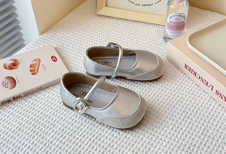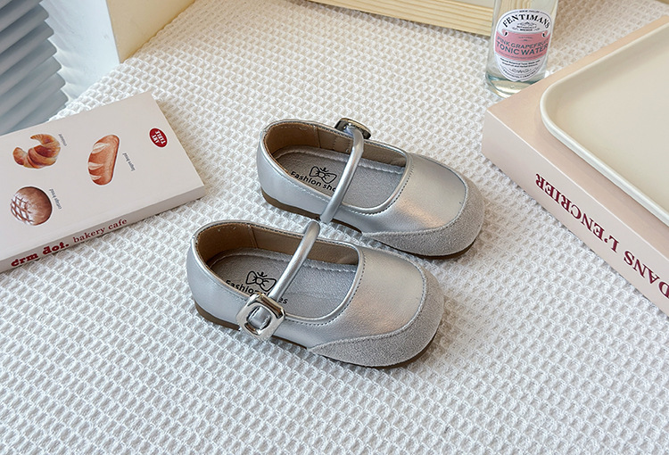 어린이 작은 가죽 신발 2025 봄과 가을 새 소녀의 둥근 발가락 부드러운 바닥 메리 제인 신발 한 단어 얕은 프렌치 싱글 레이어 신발 얕은 입
