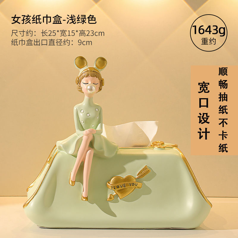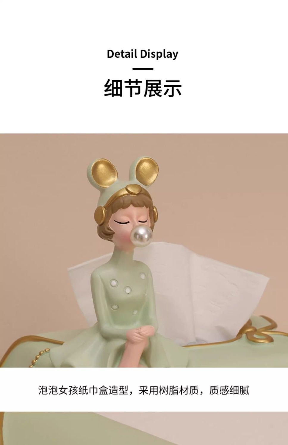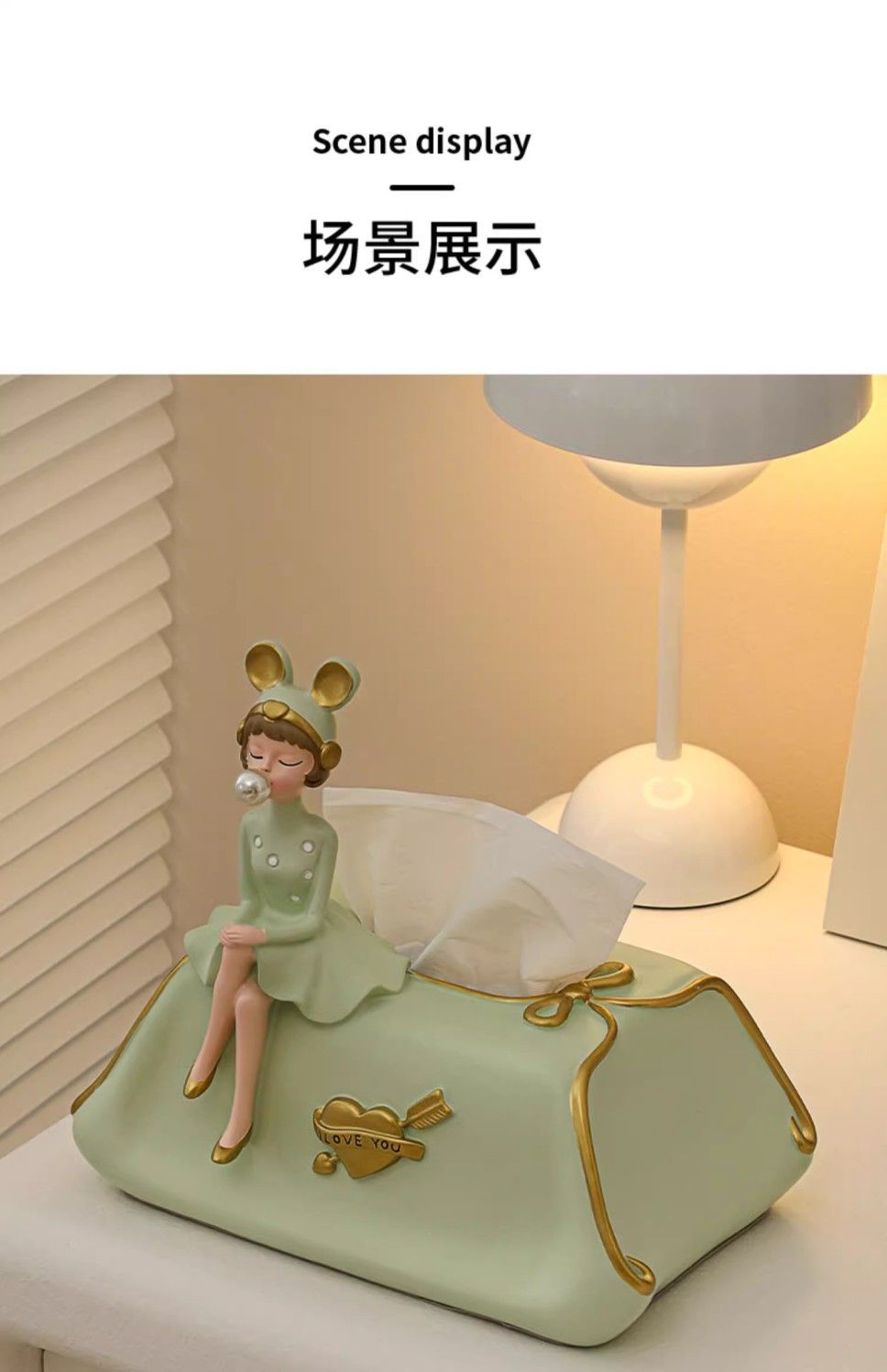 • [라이트 그린] 앉아있는 소녀 - 티슈 박스