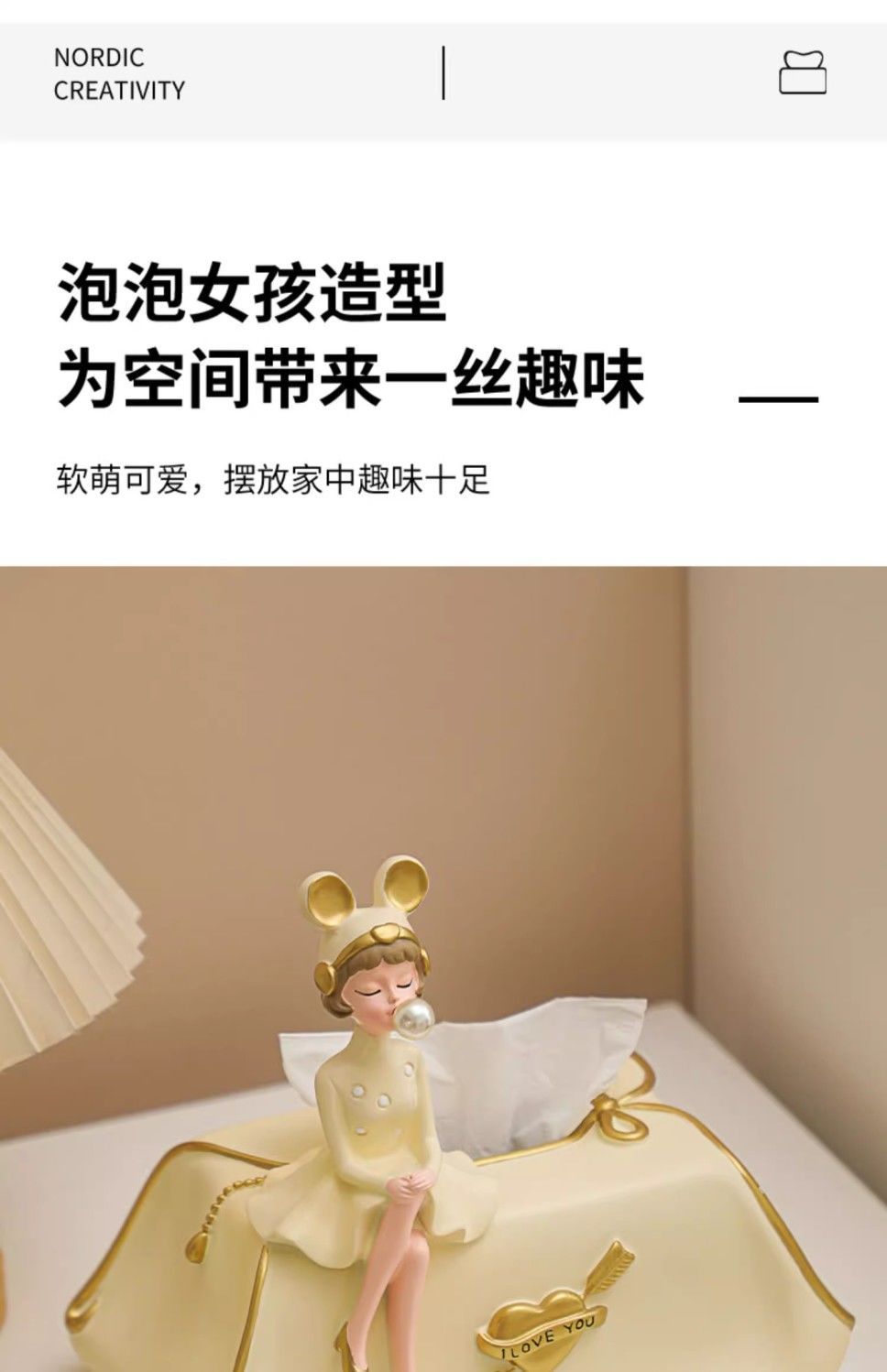 창조적 인 크림 스타일 소녀 조직 상자 종이 상자 종이 상자 장식품 가벼운 고급 가정 식탁 거실 바탕 화면 장식