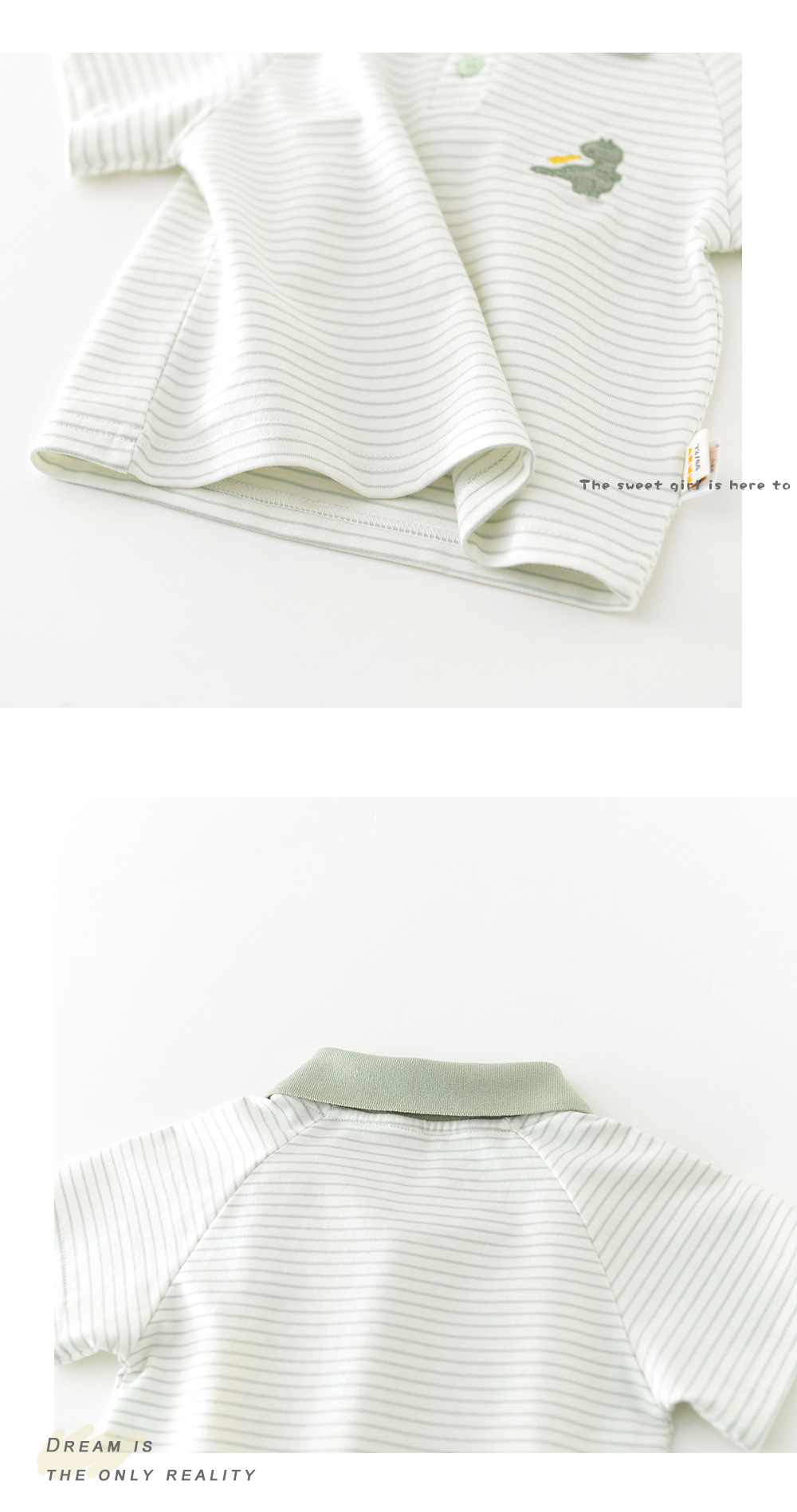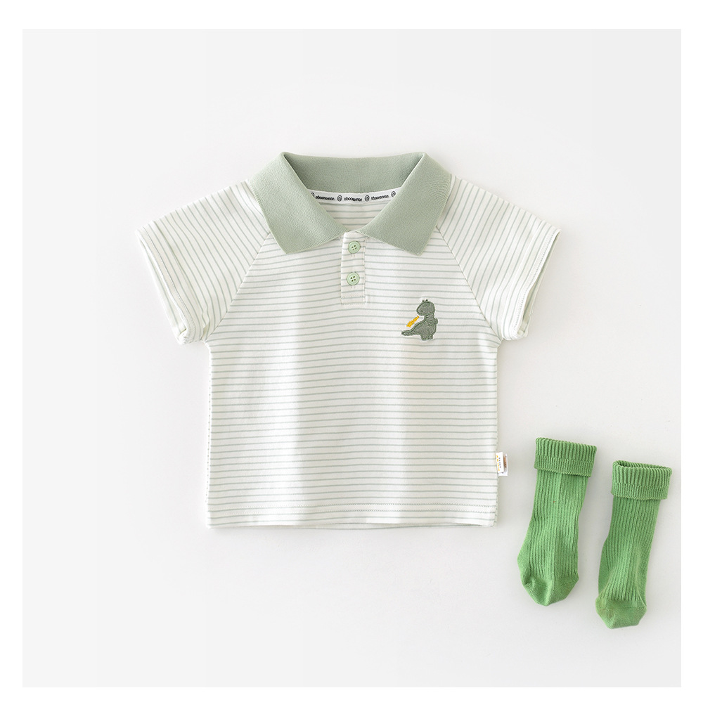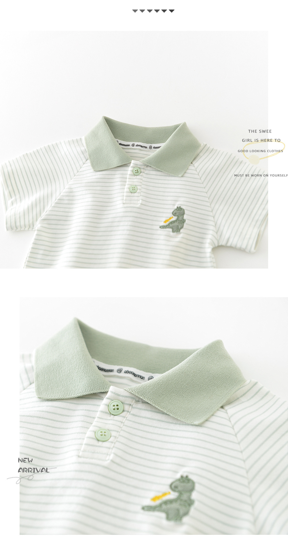 여름 새 소년 줄무늬 옷깃 폴로 셔츠 0-3 세 아기 만화 공룡 짧은 소매 티셔츠 52902스토어 가기