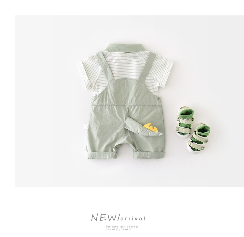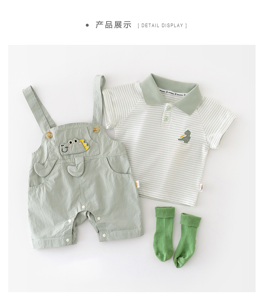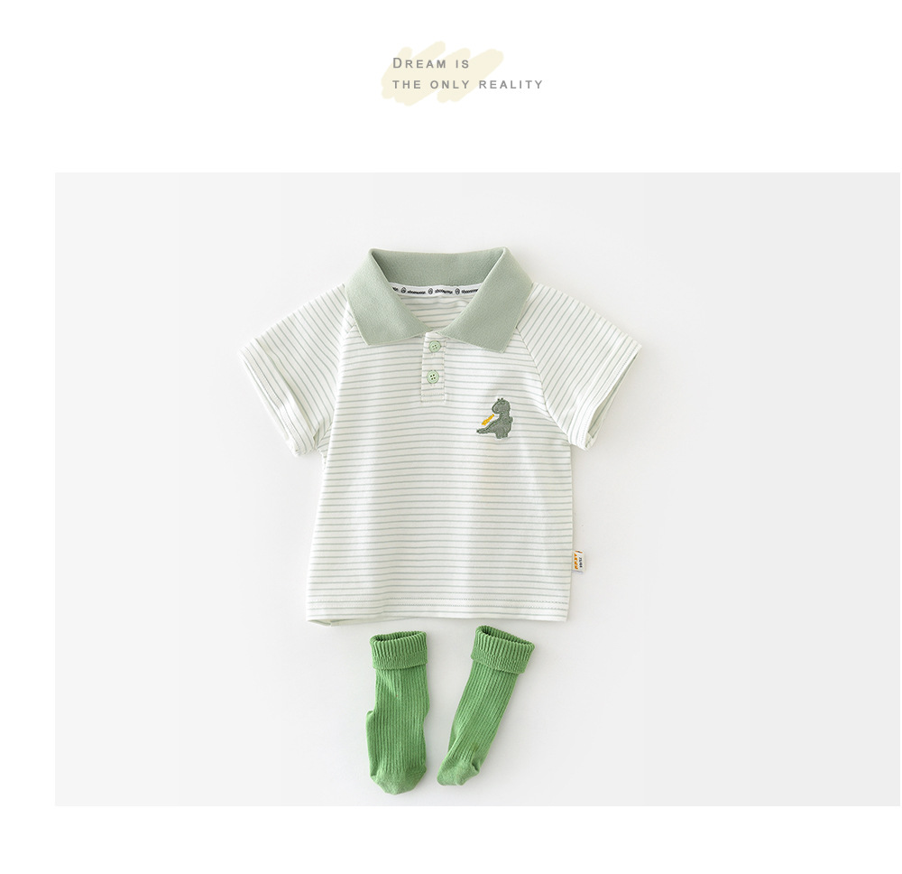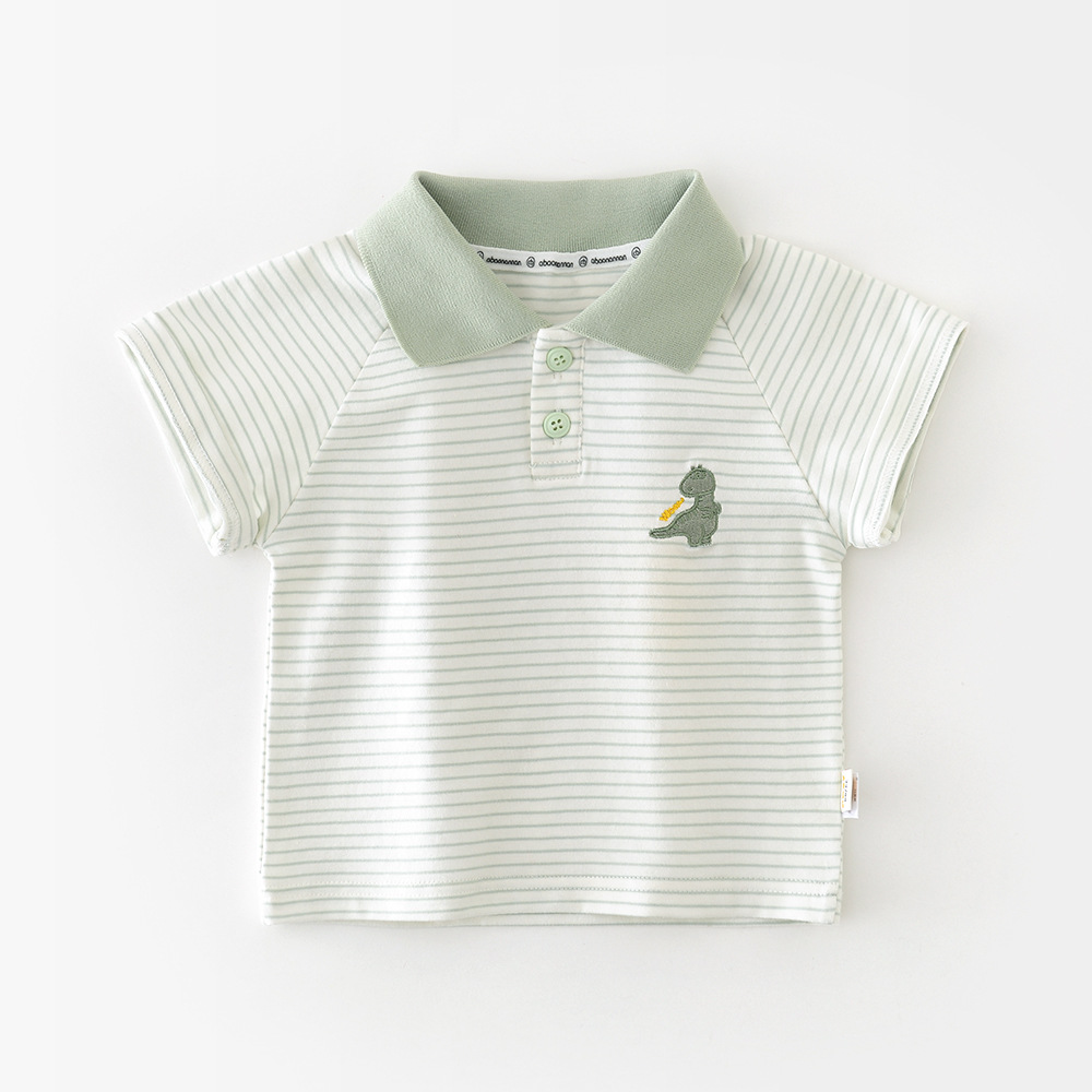 여름 새 소년 줄무늬 옷깃 폴로 셔츠 0-3 세 아기 만화 공룡 짧은 소매 티셔츠 52902스토어 가기