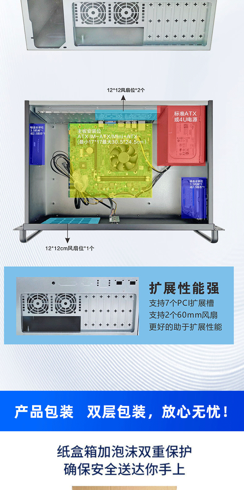 4U300 짧은 산업 제어 섀시 랙 ATX 대형 보드 데스크탑 전원 산업용 컴퓨터 서버 섀시
