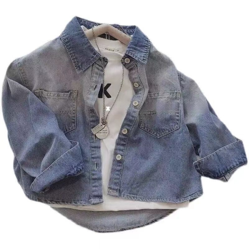남학생 데님 셔츠 새 봄 · 가을 정상 어린이 아기 코트 어린이 한국식 긴팔 그라디언트 가을스토어 가기