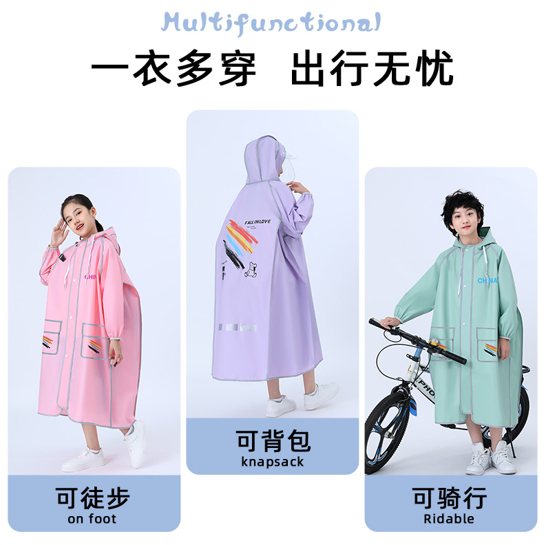 중년 및 중학생 학생들을위한 남학생과 여학생을위한 스쿨백 비트로 두꺼운 어린이 비옷스토어 가기