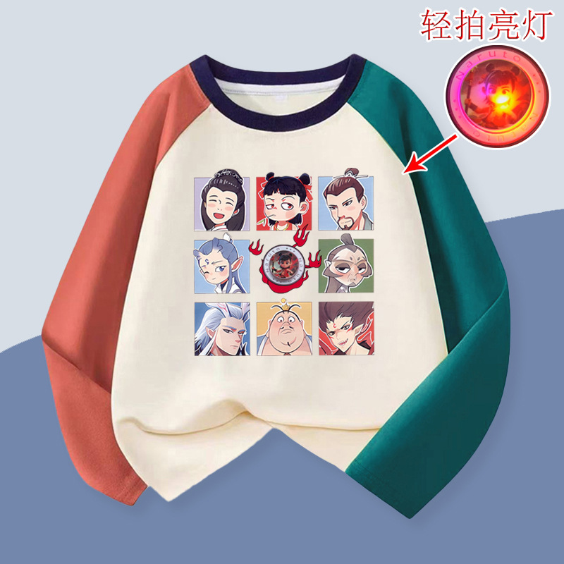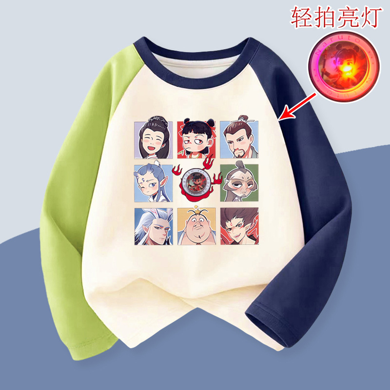 2025 년 봄 뉴 보이즈 코튼 긴팔 티셔츠 Nazha Moomaru 어린이 잘 생긴 Raglan 슬리브 탑베이스 셔츠스토어 가기