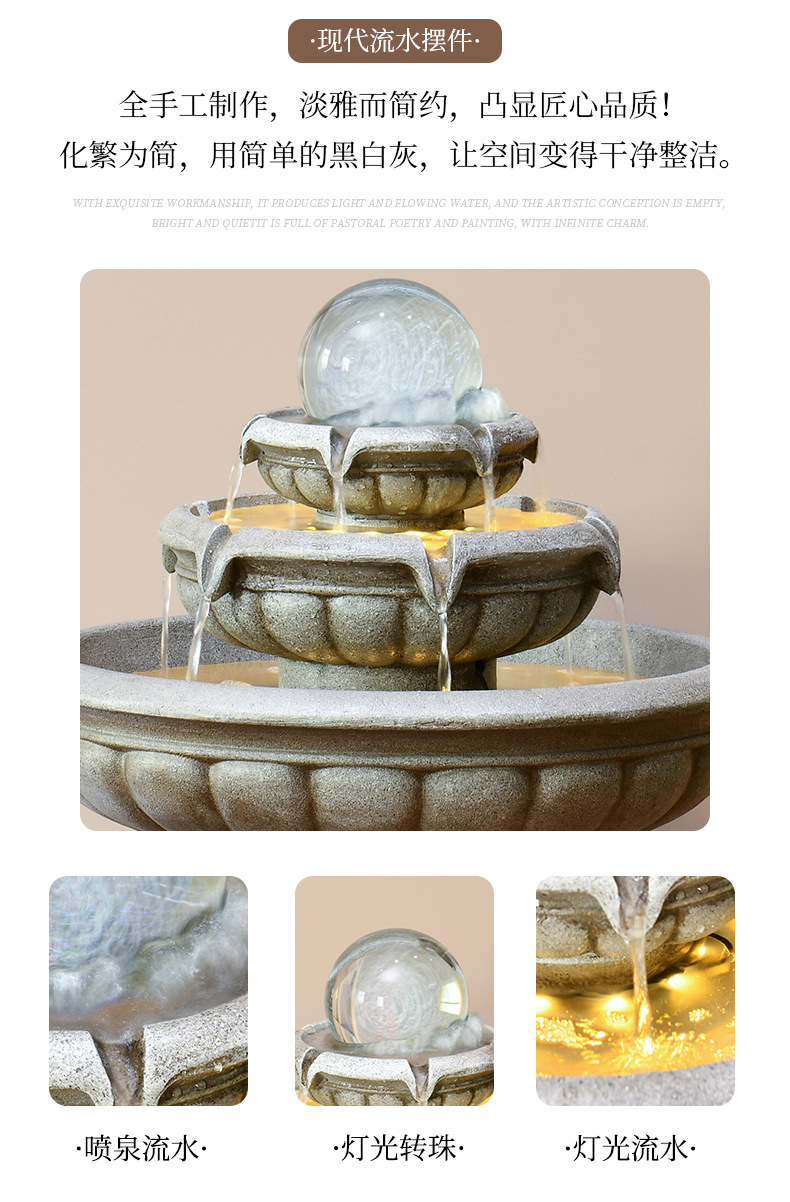 간단한 유럽 스타일의 흐르는 물 분수 풍수 휠 석가산 가습기 순환 물 사무실 거실 안뜰 풍경 장식품스토어 가기