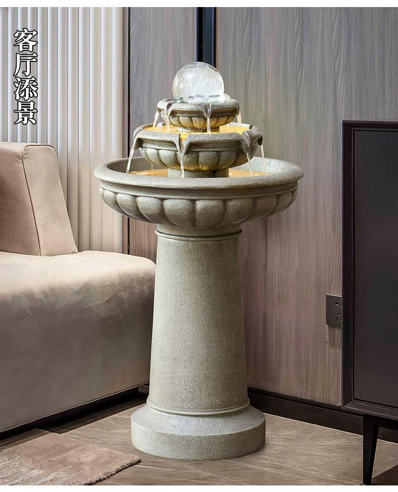 간단한 유럽 스타일의 흐르는 물 분수 풍수 휠 석가산 가습기 순환 물 사무실 거실 안뜰 풍경 장식품