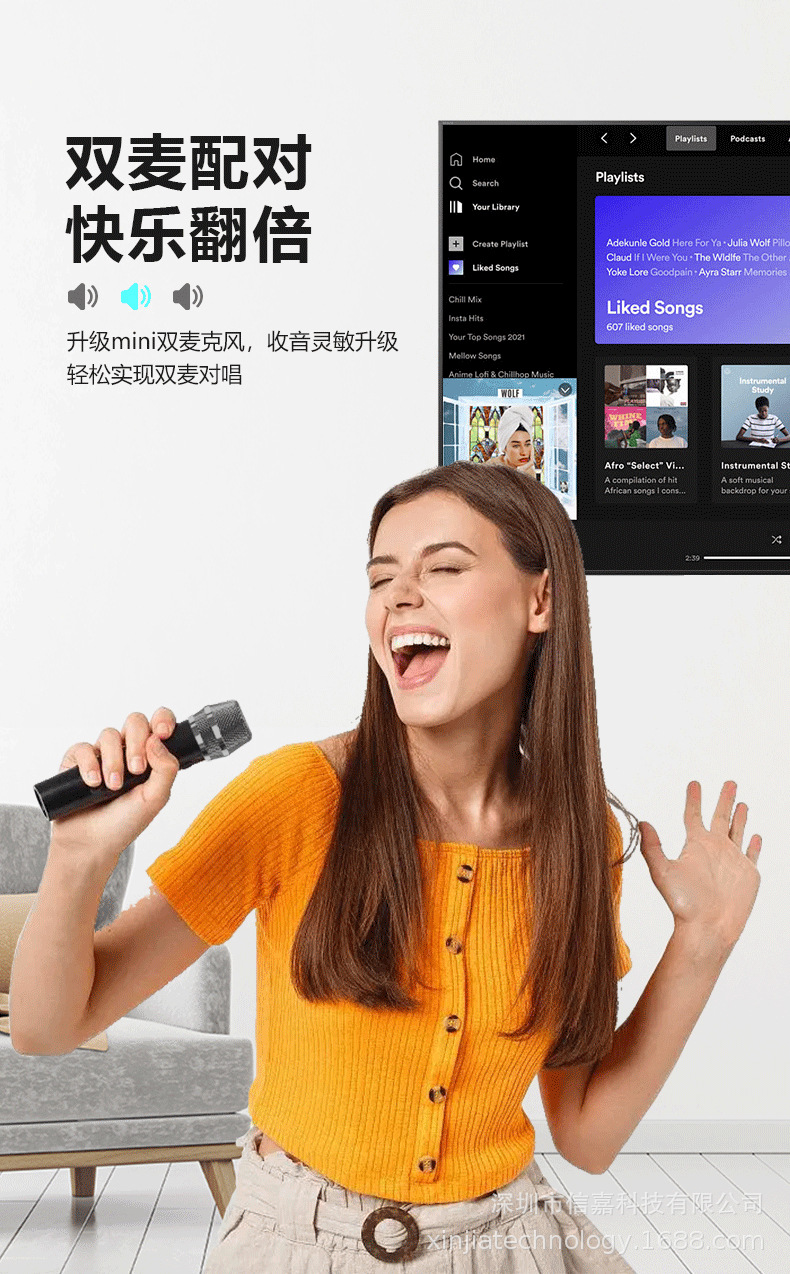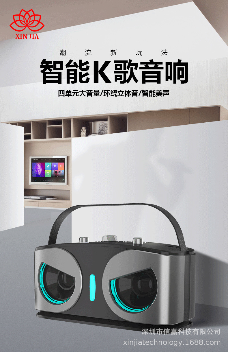 产品功能:蓝牙、TF卡、 USB 、AUX 、 K歌、 LED灯、 变音魔音、消原音