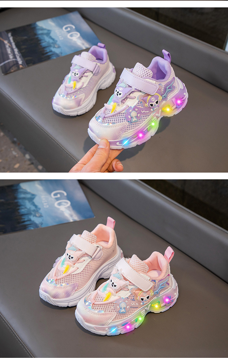 소녀 운동화 2025 여름 새로운 스타일 통기성 공주 신발 어린 소녀 캠퍼스 빛나는 캐주얼 메쉬 러닝 신발스토어 가기