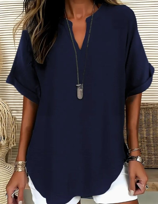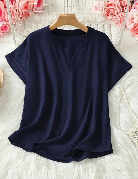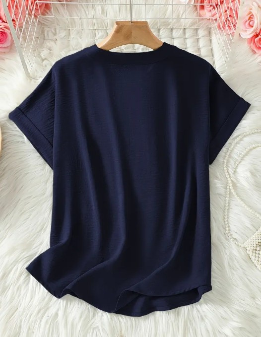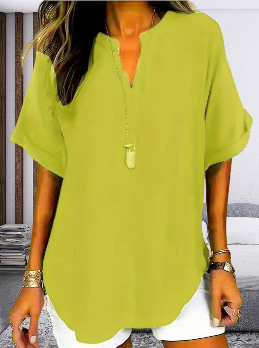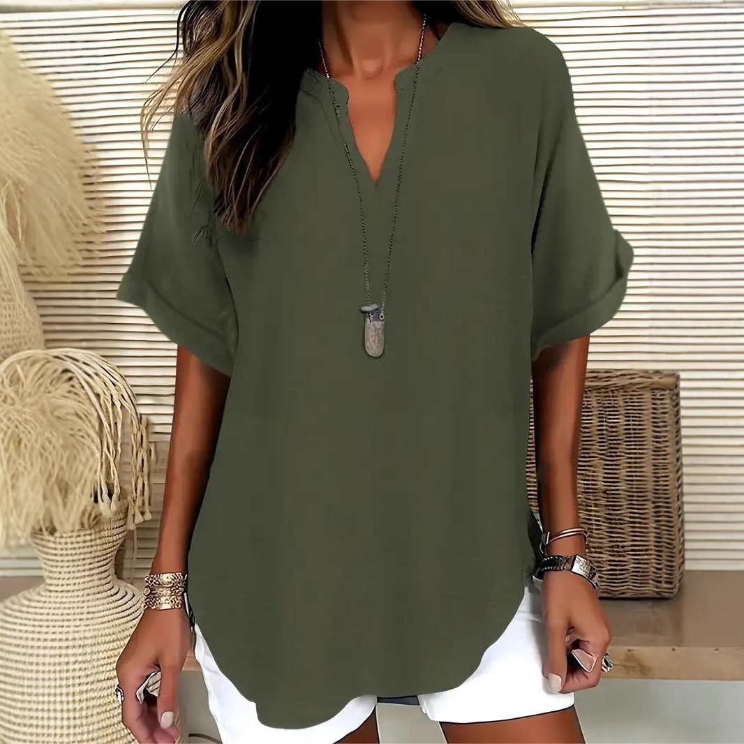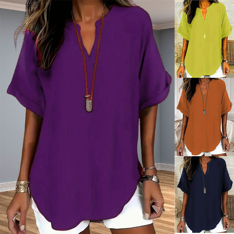 아마존 유럽과 미국의 국경 여성 우아한 V 넥 캐주얼 탑 봄 여름 가을 짧은 소매 셔츠 풀린 버전