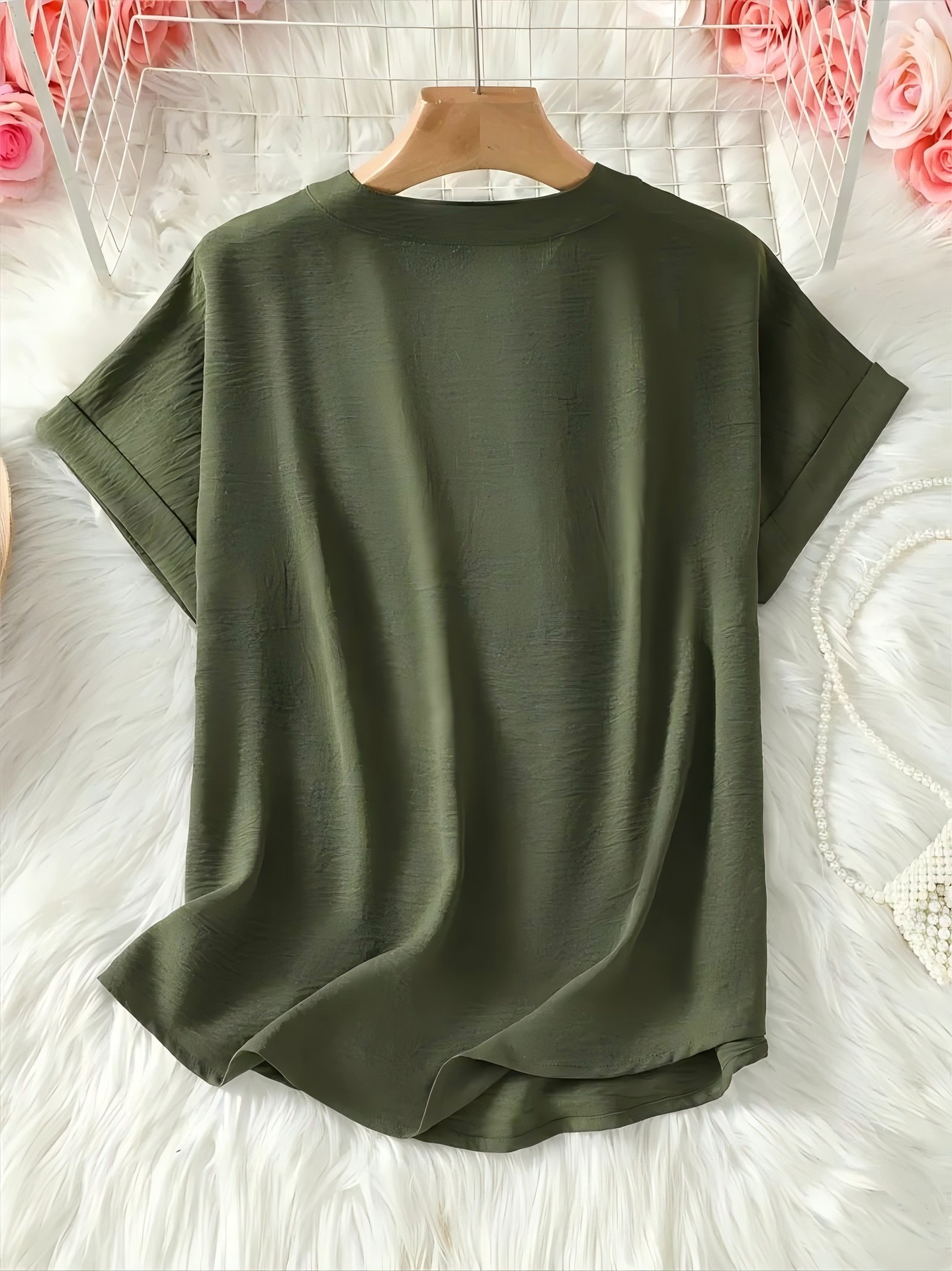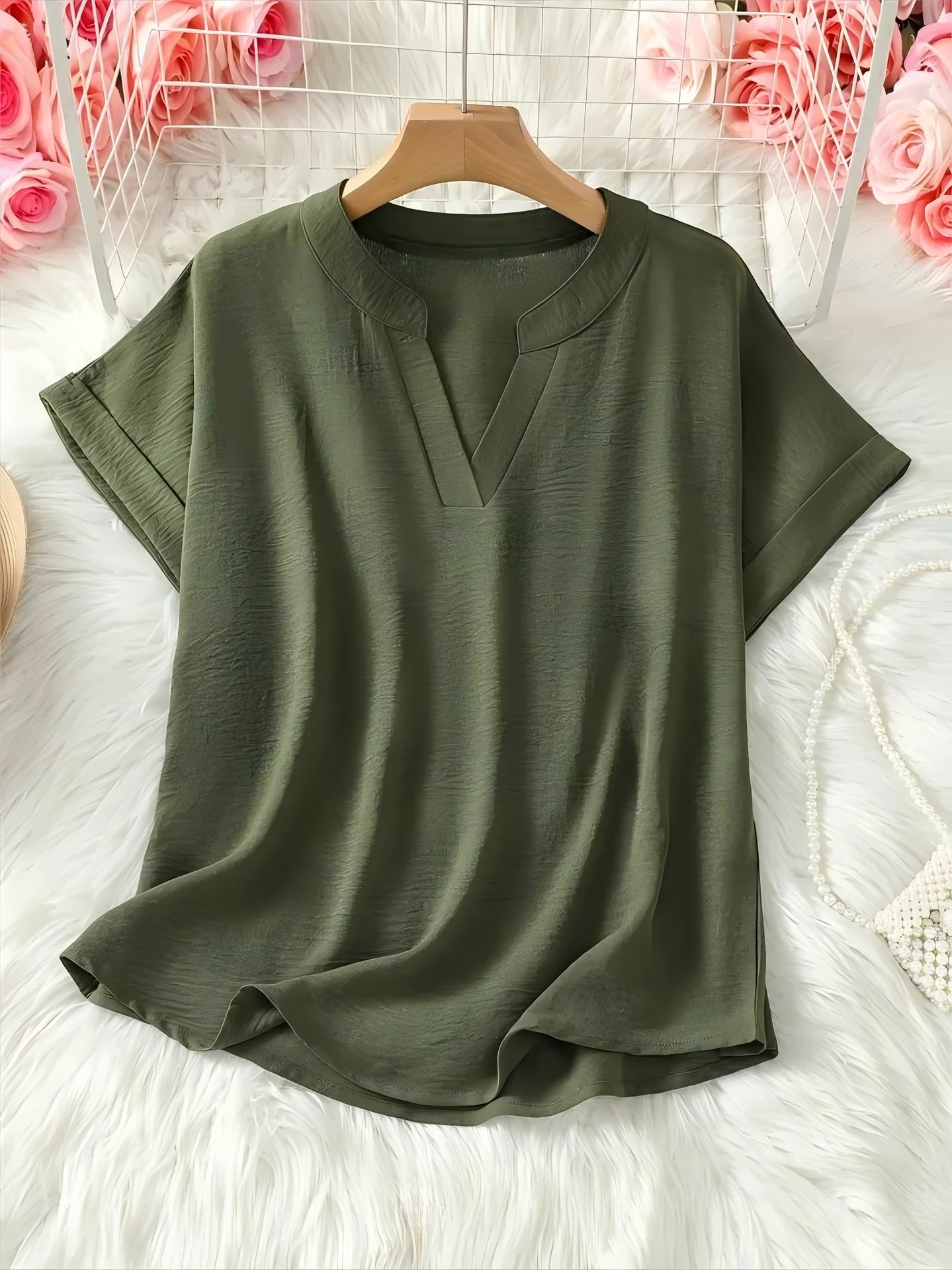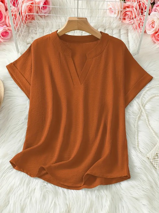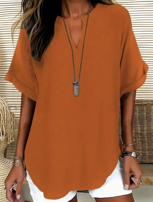 아마존 유럽과 미국의 국경 여성 우아한 V 넥 캐주얼 탑 봄 여름 가을 짧은 소매 셔츠 풀린 버전