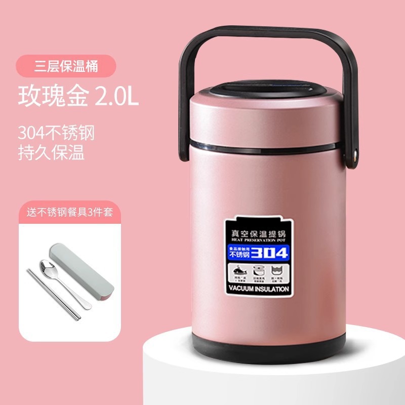 • 3단 보온통 2.0L [로즈골드] + 식기 3종세트