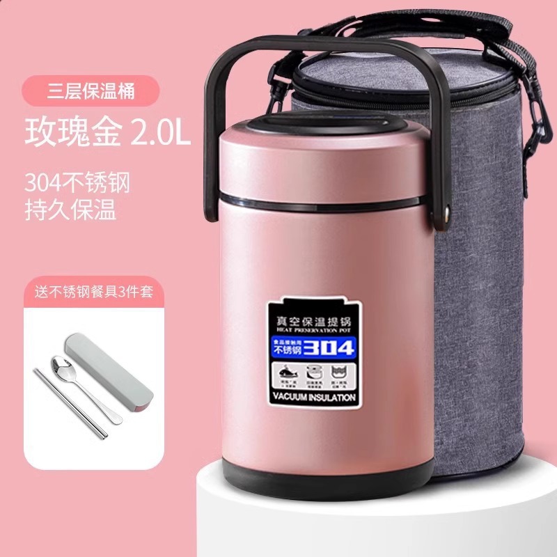 • 3단 보온통 2.0L [로즈골드] + 식기3종세트 + 보온가방
