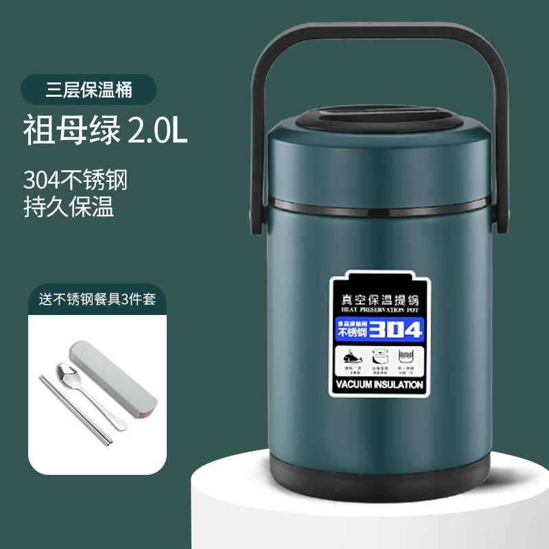 • 3단 보온통 2.0L [에메랄드] + 식기 3종세트 + 보온가방