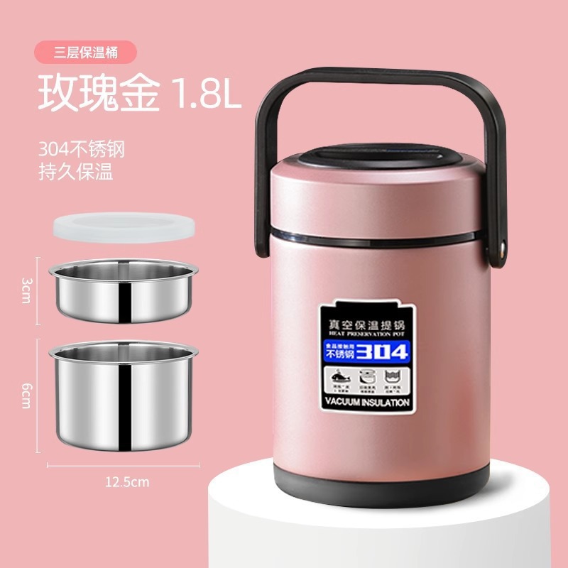 • 3단 보온통 1.8L [로즈골드] + 식기3종세트 + 보온가방