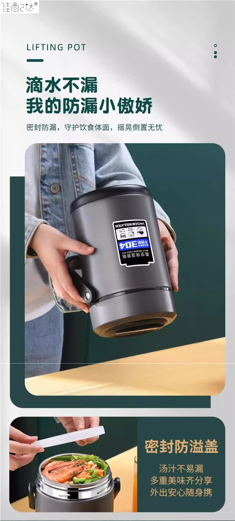 절연 도시락 겨울 슈퍼 긴 절연 배럴 사무실 근로자 시간 스테인레스 스틸 도시락 대형 휴대용 수프 냄비 없음