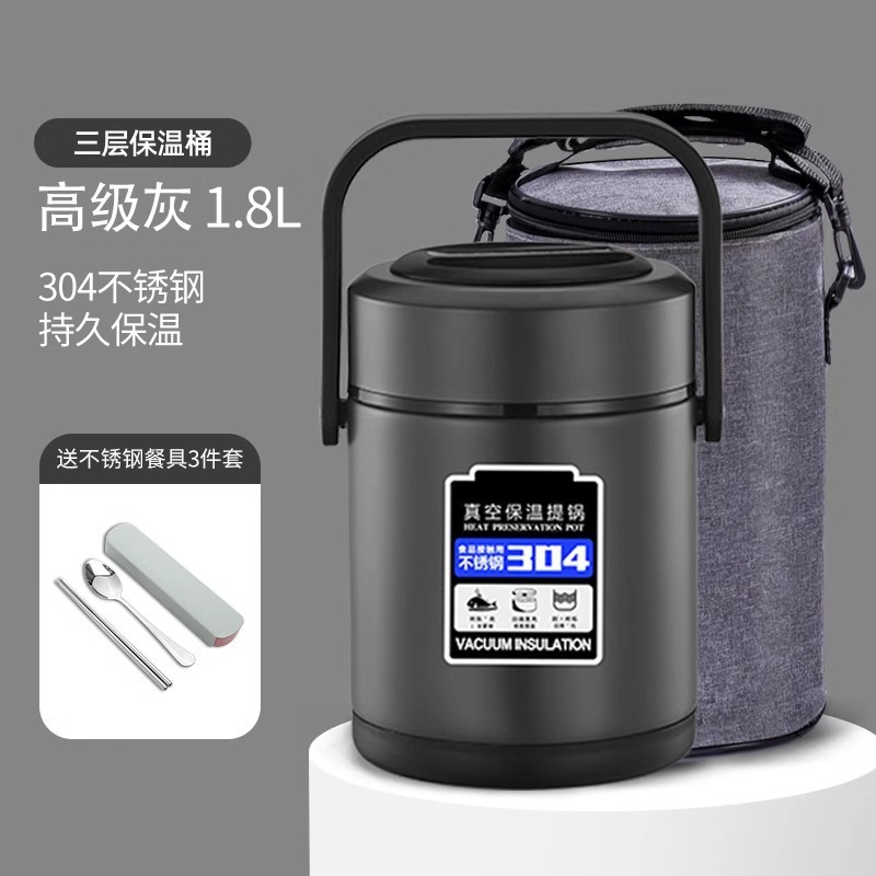 • 3단 보온통 1.8L [그레이] + 식기 3종세트 + 보온가방