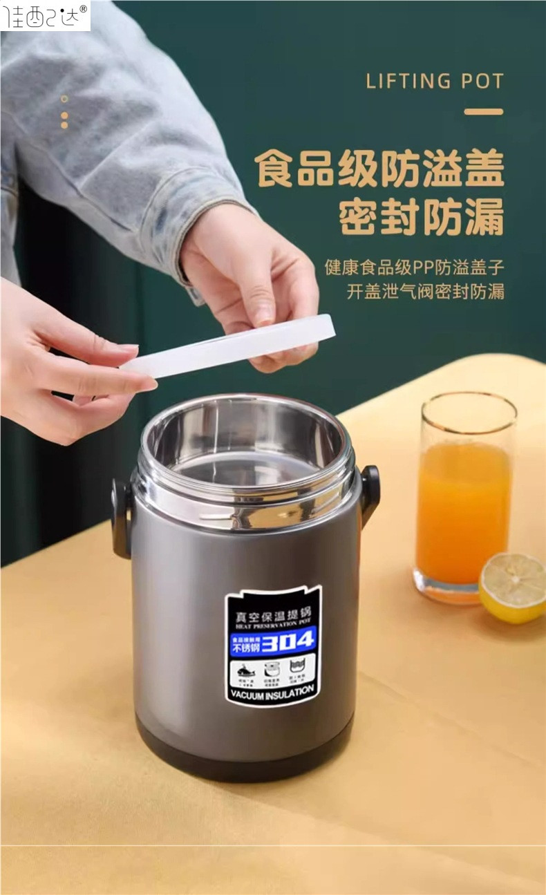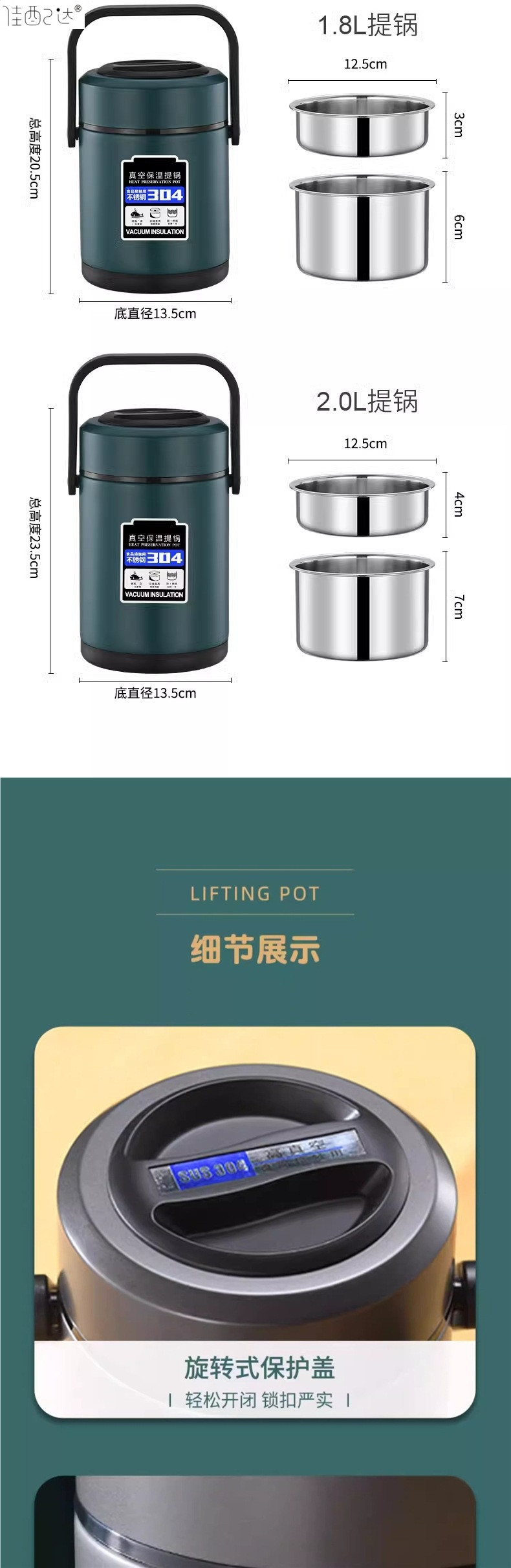 절연 도시락 겨울 슈퍼 긴 절연 배럴 사무실 근로자 시간 스테인레스 스틸 도시락 대형 휴대용 수프 냄비 없음스토어 가기