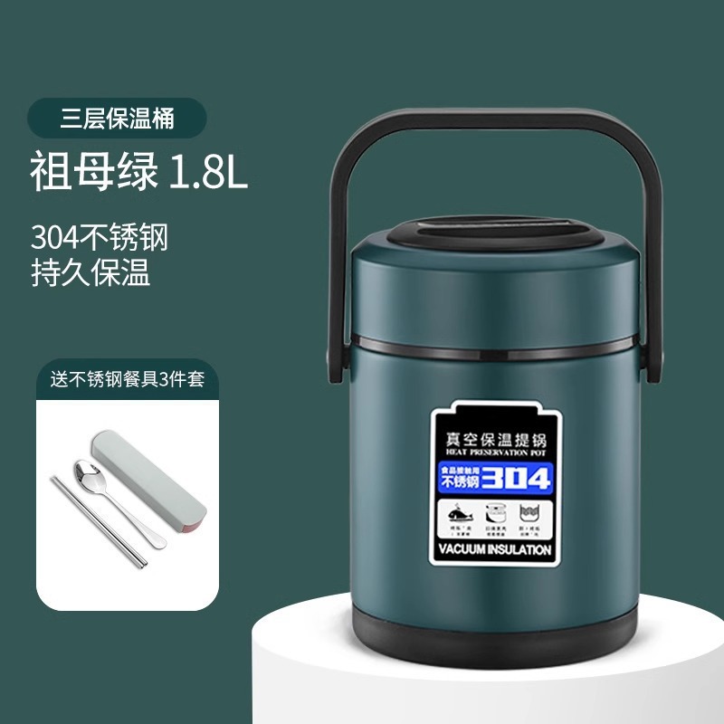 • 3단 보온통 1.8L [에메랄드] + 식기 3종세트 + 보온가방