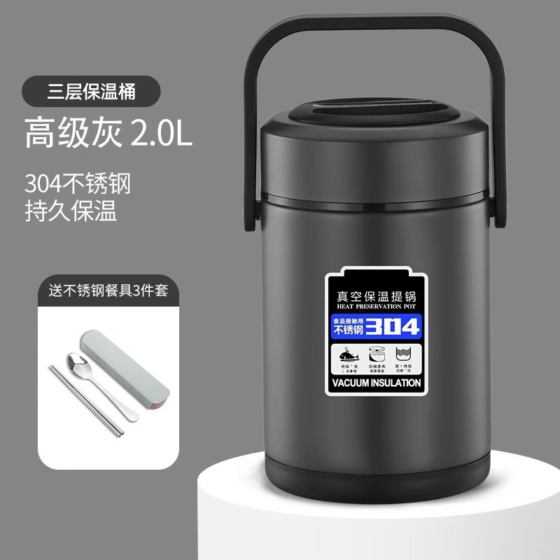 • 3단 보온통 2.0L [그레이] + 식기 3종세트 + 보온가방