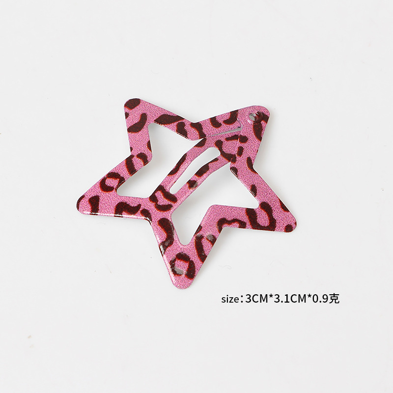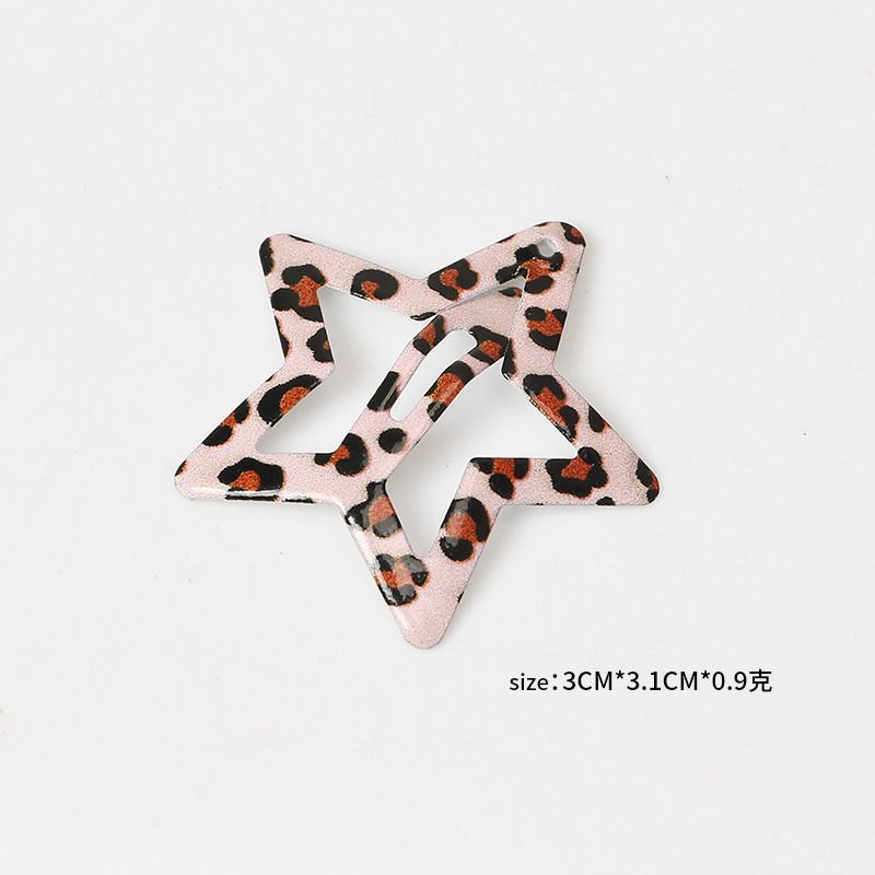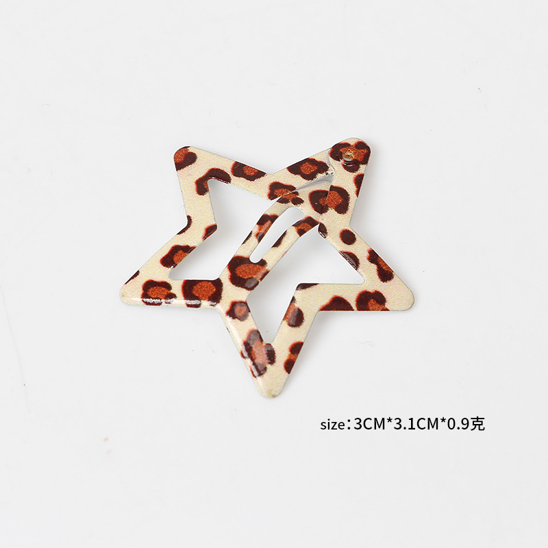 새로운 레오파드 컬러 빈티지 사이드 클립 bb 클립 패션 파이브형 스타 브로큰 헤어 프린지 클립 사이드 클립 여성용 헤어 액세서리 머리 주소