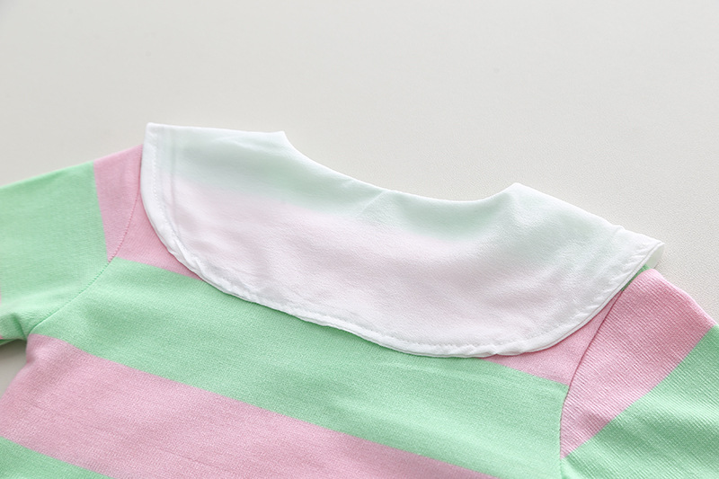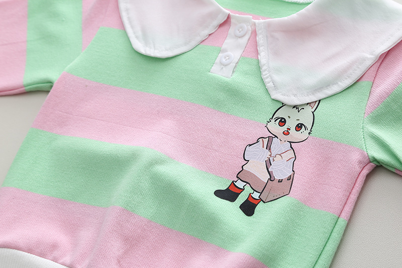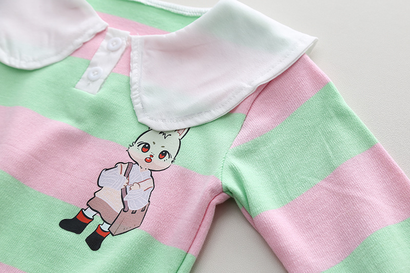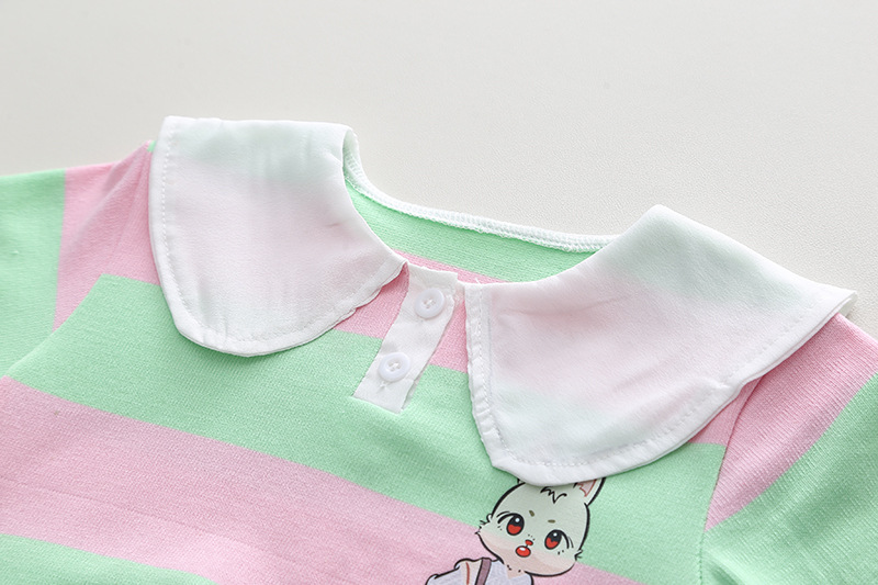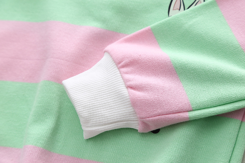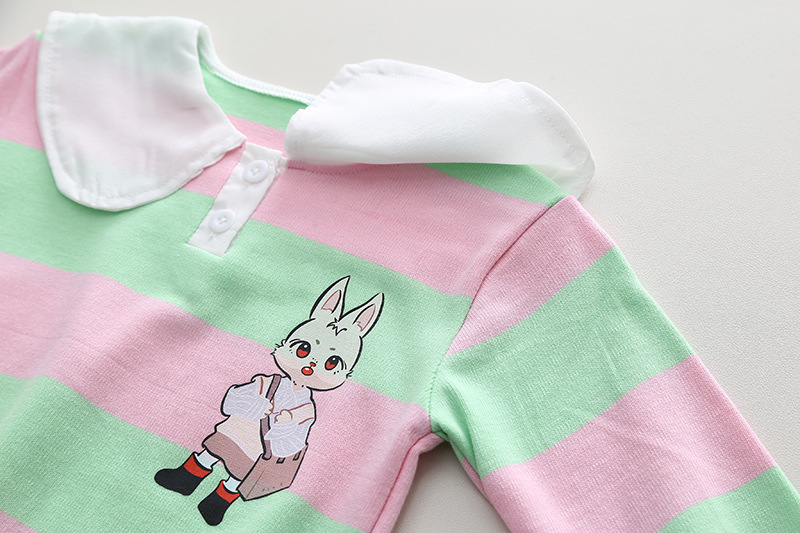 봄 세트 2025 봄과 가을 소녀 아이들의 새로운 어린이 서양식 줄무늬 배낭 토끼 긴 소매 투피스 세트