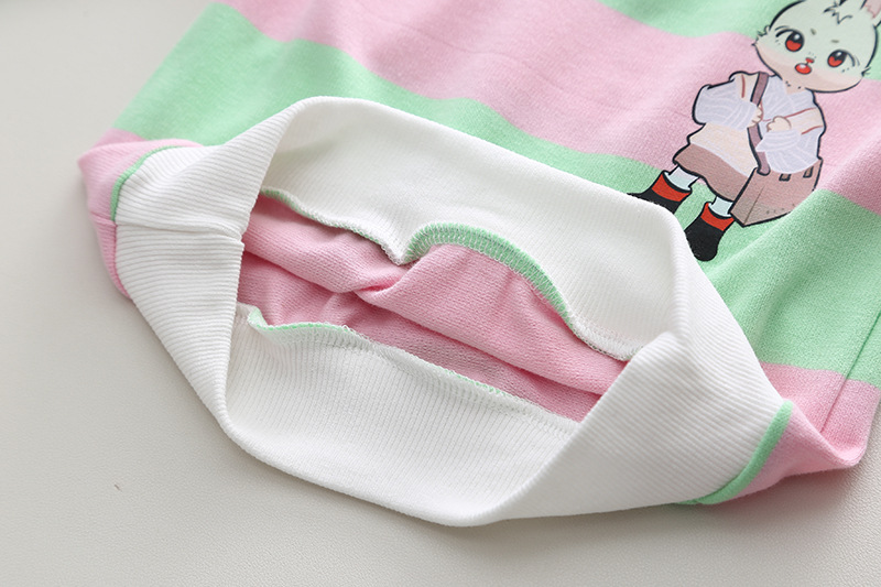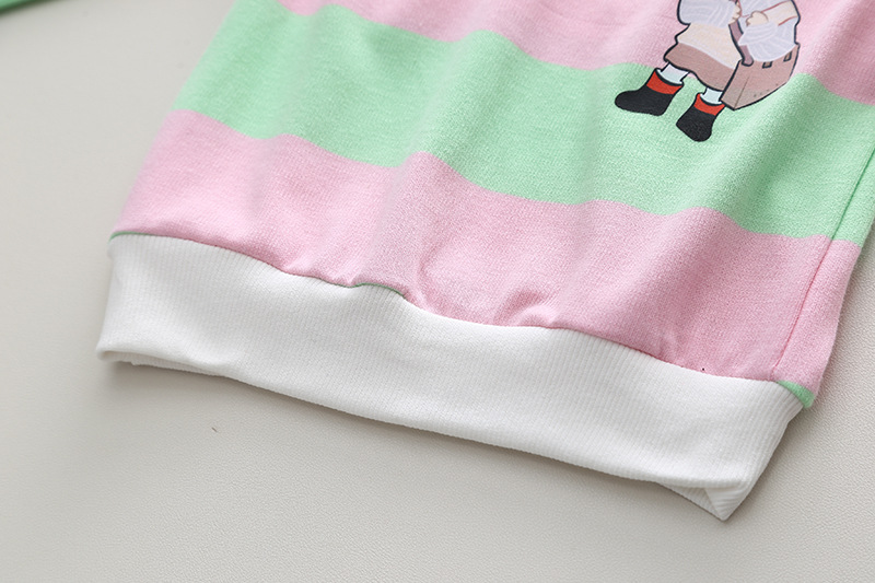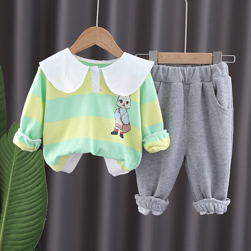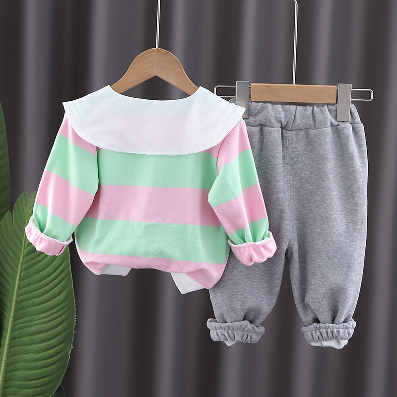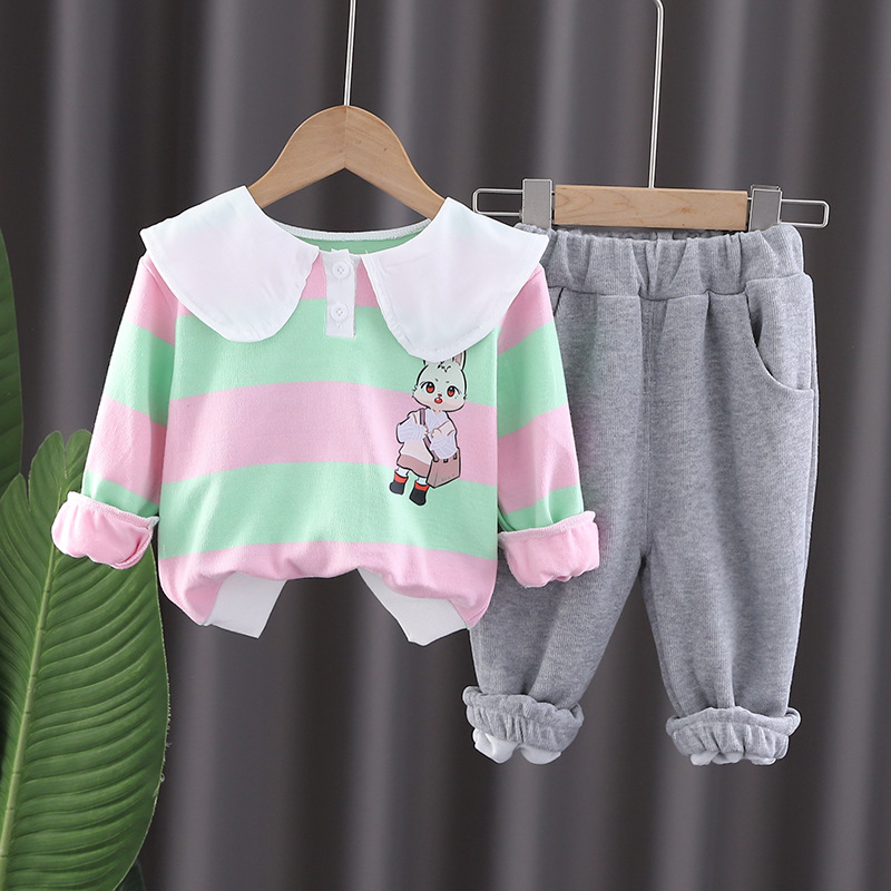 봄 세트 2025 봄과 가을 소녀 아이들의 새로운 어린이 서양식 줄무늬 배낭 토끼 긴 소매 투피스 세트스토어 가기